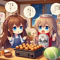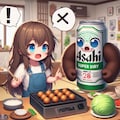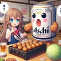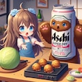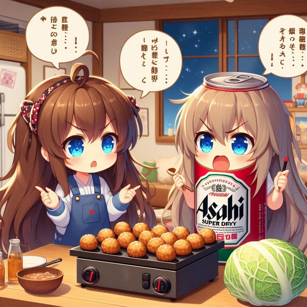 たこ焼きにキャベツ入れるか論争しているビール缶と小さな女の子