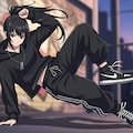 jacket partially removed, heart in eye, burnt clothes, holding fishing rod, kanji, doujin cover, pentagram, tape gag, adjusting headwear, red socks, friends, cloud print, coke-bottle glasses, oral invitation, competition school swimsuit, barbell piercing, gradient legwear, prisoner, blood on breasts, wind chime, carrying over shoulder, tape measure, flaming weapon