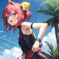 水泳っぽいけど、胴に謎の帯…陸上競技のゴールテープか?