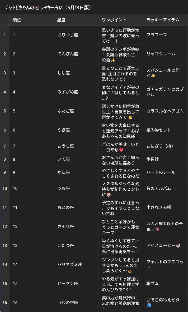05/13のチャトピちゃん占い 2025/05/12 使用したAI ChatGPT #チャトピちゃん占い 毎日お昼ごろに明日の運勢をお届けっチャトピちゃん占いー 呪文 入力なし ねこなみさくら 9,601 投稿 フォロー 1,176 フォロワー 1,287 ねこなみさくらは下記が好きな方に効果があります猫/メイドさん/猫耳/ろりっ子/謎な物/くすっとしたい/日替わり画像投稿量が多いのでホームの閲覧がお勧めです呪文やネタの利用はご自由にーR-15・18もー↓いろいろまとめーhttps://www.chichi-pui.com/posts/7835be9f-d077-48bb-b2c8-bbcb1003bf19/ ねこなみさくらさんの他の作品 ねこなみさくらさんの他の作品 チャトピちゃん占い(02/14) ねこなみさくら ちゅーっ ねこなみさくら 日付を入れてみる 02/13 ねこなみさくら きょうのこはるさん2 ねこなみさくら きょうのオムライス(02/13) ねこなみさくら チャトピちゃん占い(02/14) ねこなみさくら ちゅーっ ねこなみさくら 日付を入れてみる 02/13 ねこなみさくら きょうのこはるさん2 ねこなみさくら きょうのオムライス(02/13) ねこなみさくら てててー、てってててー(02/13) ねこなみさくら