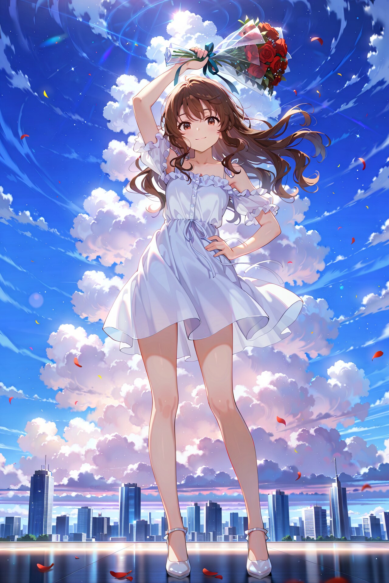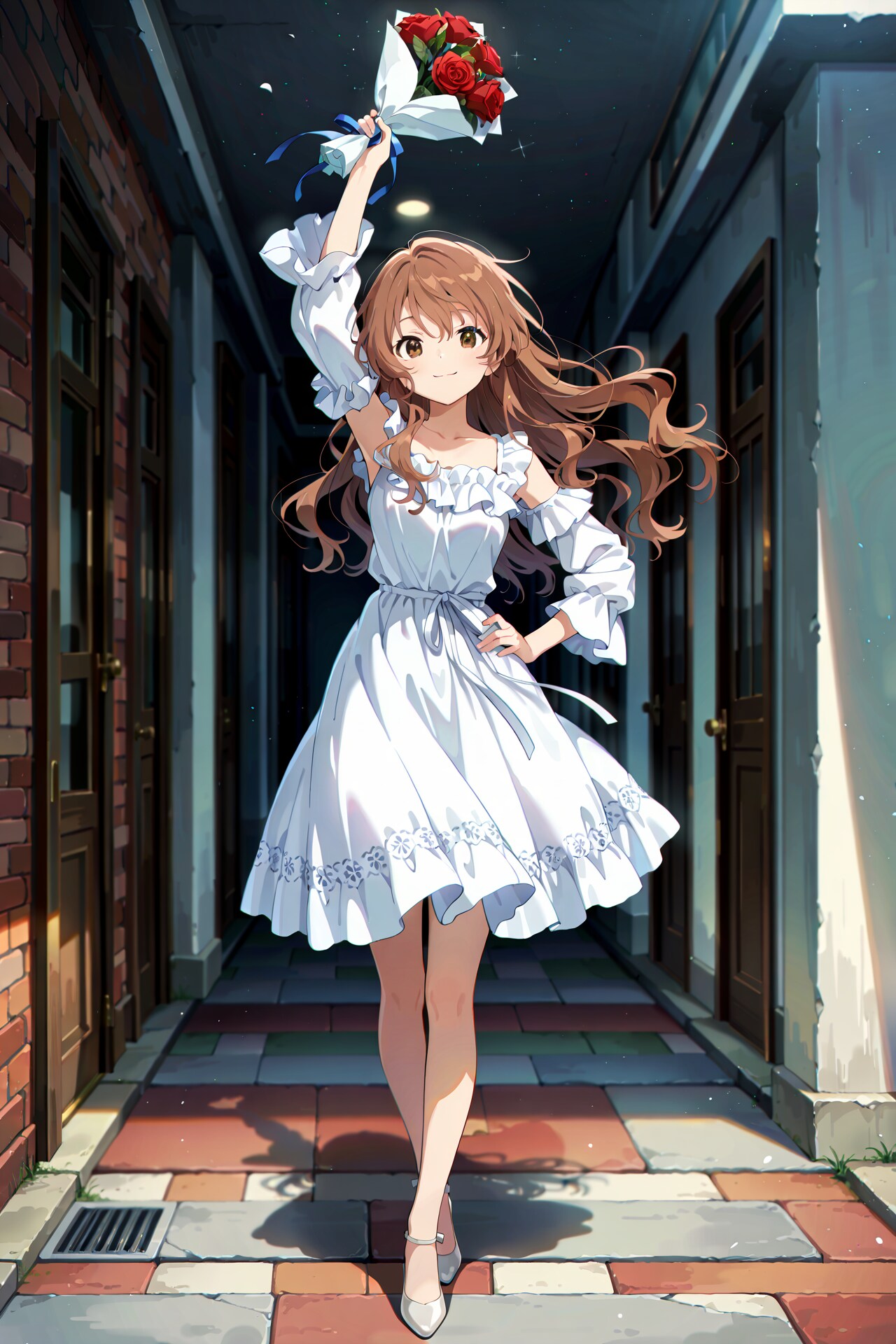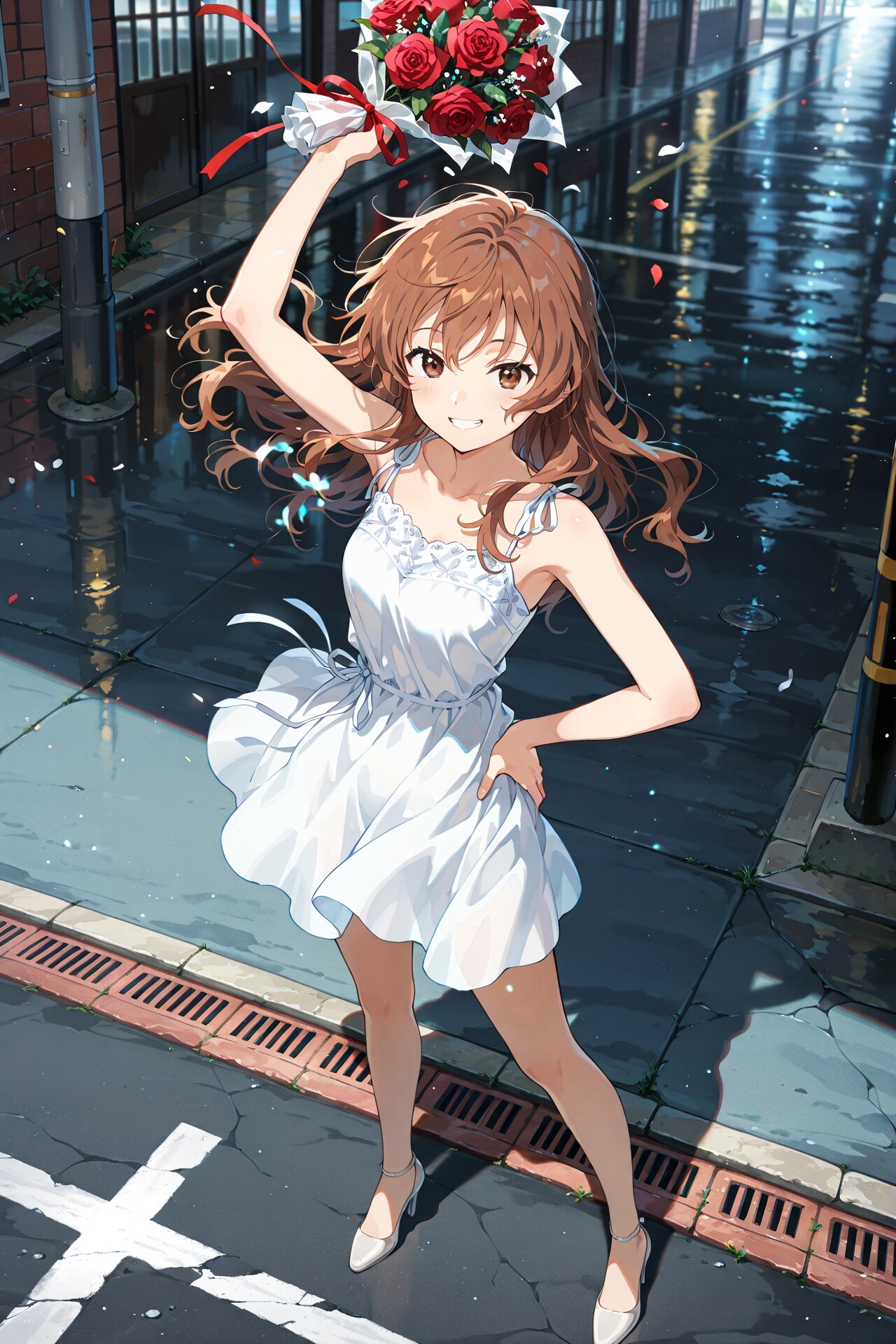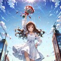 右手に持っているバラの花束を振り降ろそうとしている構図は全て同じですが、背景の描写など少しずつ呪文を変えています。