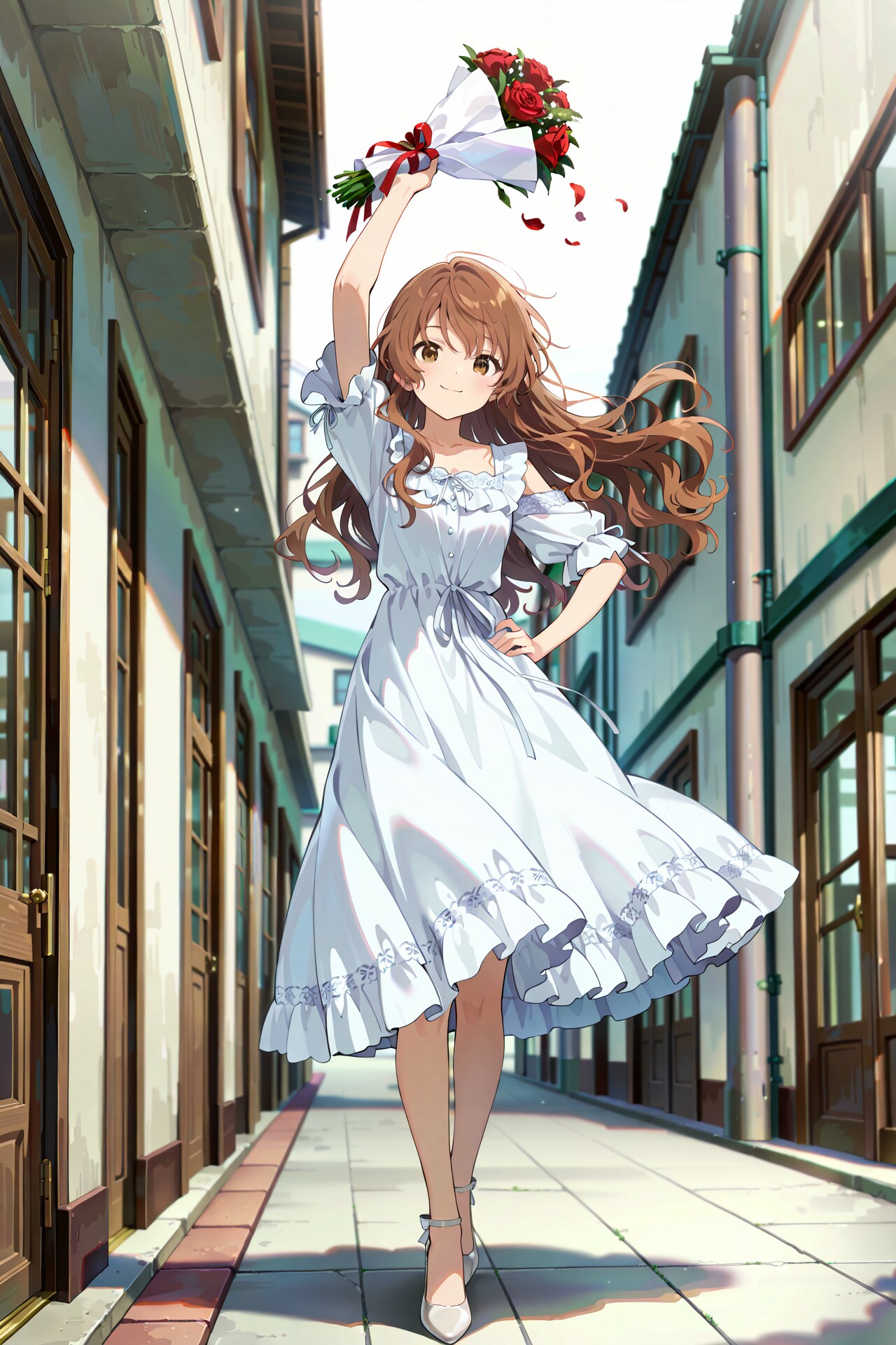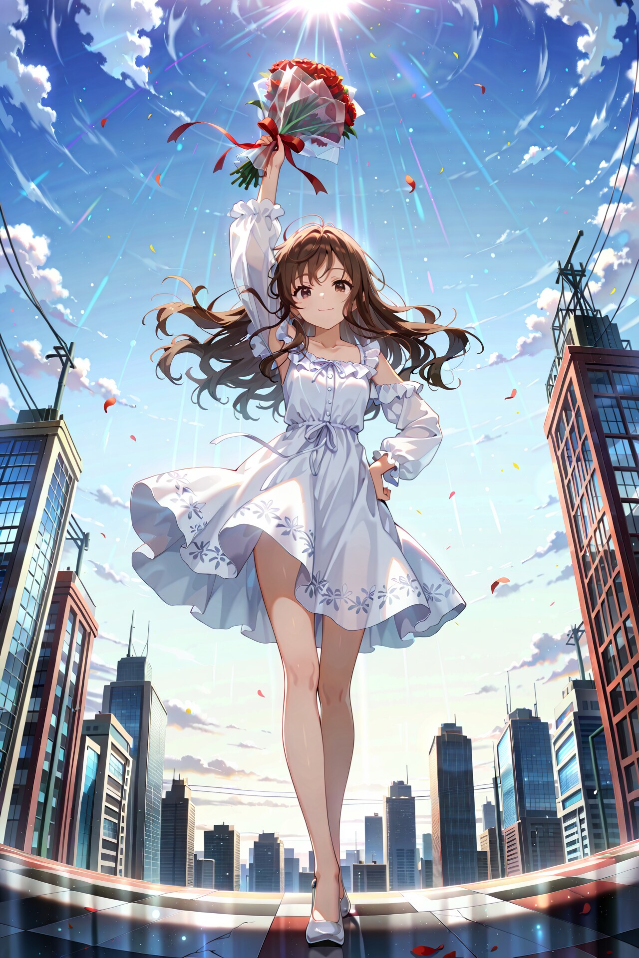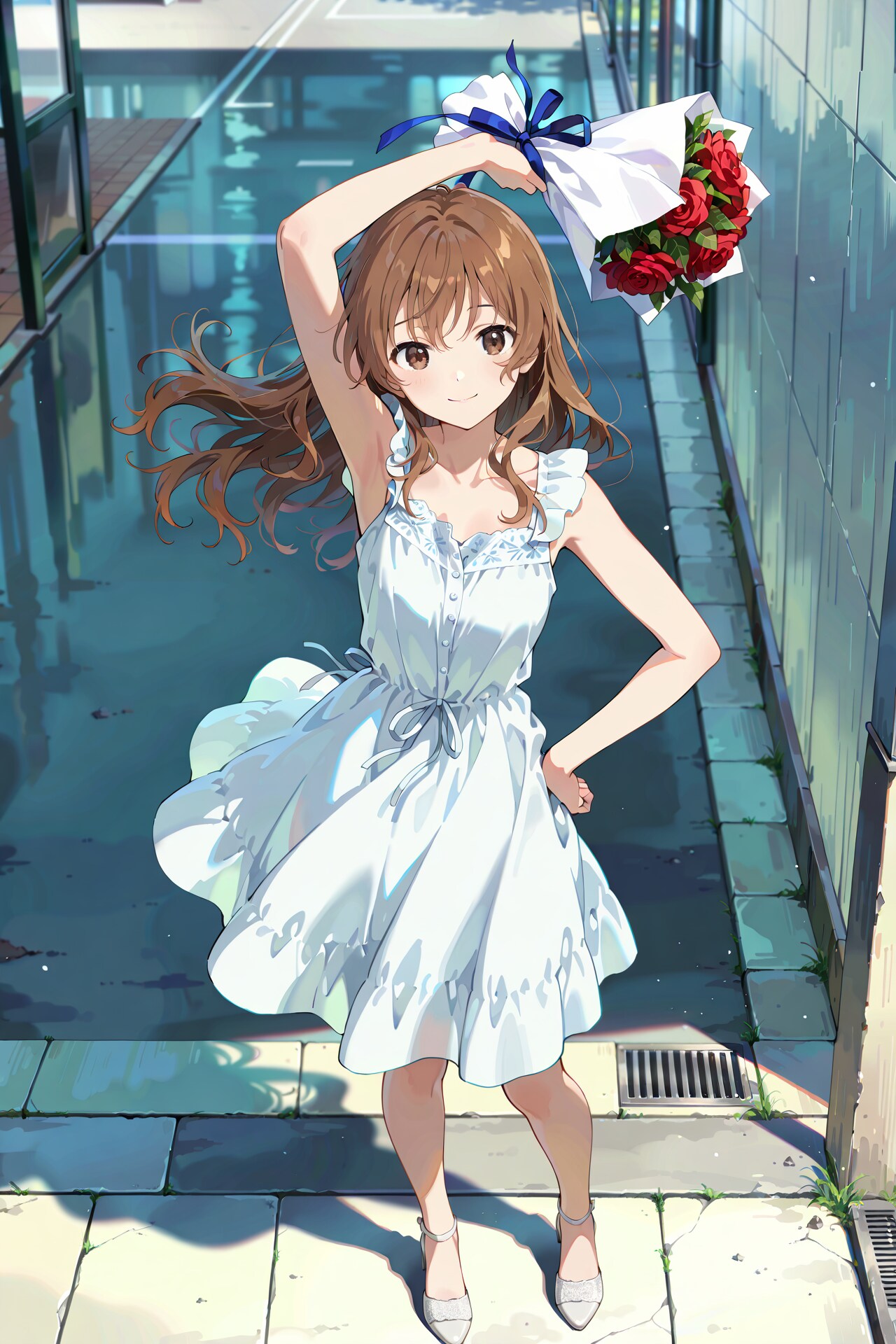 右手に持っているバラの花束を振り降ろそうとしている構図は全て同じですが、背景の描写など少しずつ呪文を変えています。
