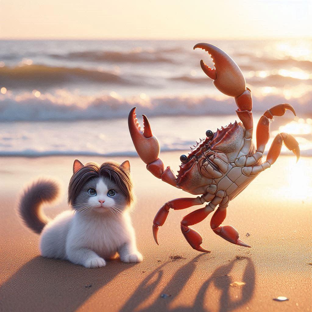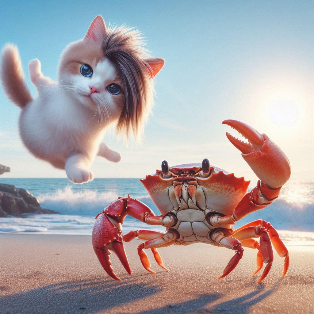 短髪の蟹さんとゲストのネコさま