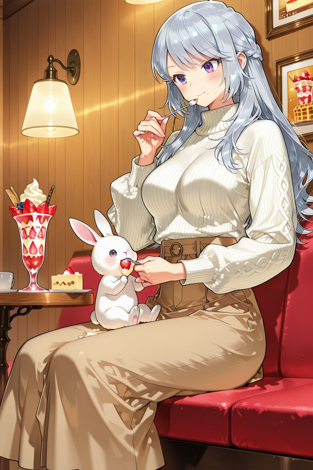WAVEは仔ウサギがパフェに埋もれてるように見える……。他のはみんな素直(?)に苺を食べたり狙ってるんですが。