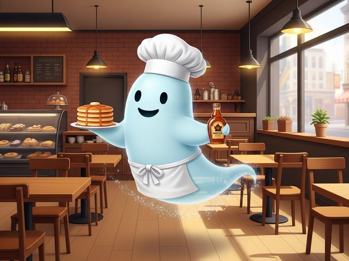 デザートのお化けシェフ御手製メイプルシロップ付きホットケーキ