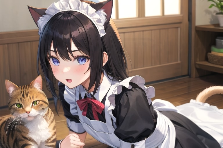 4枚目 1girl,cat,maid