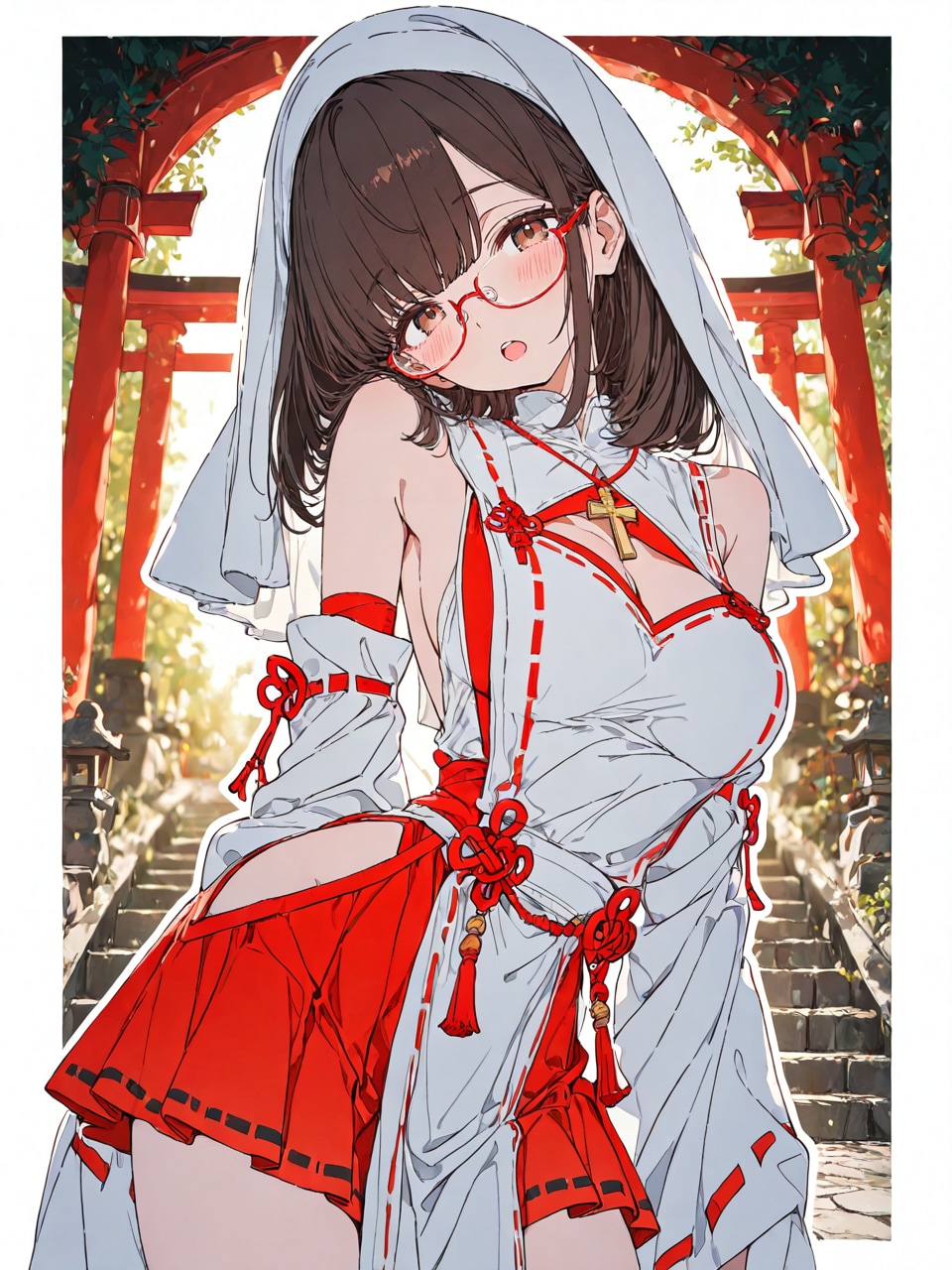 jacket partially removed, heart in eye, burnt clothes, holding fishing rod, kanji, doujin cover, pentagram, tape gag, adjusting headwear, red socks, friends, cloud print, coke-bottle glasses, oral invitation, competition school swimsuit, barbell piercing, gradient legwear, prisoner, blood on breasts, wind chime, carrying over shoulder, tape measure, flaming weapon