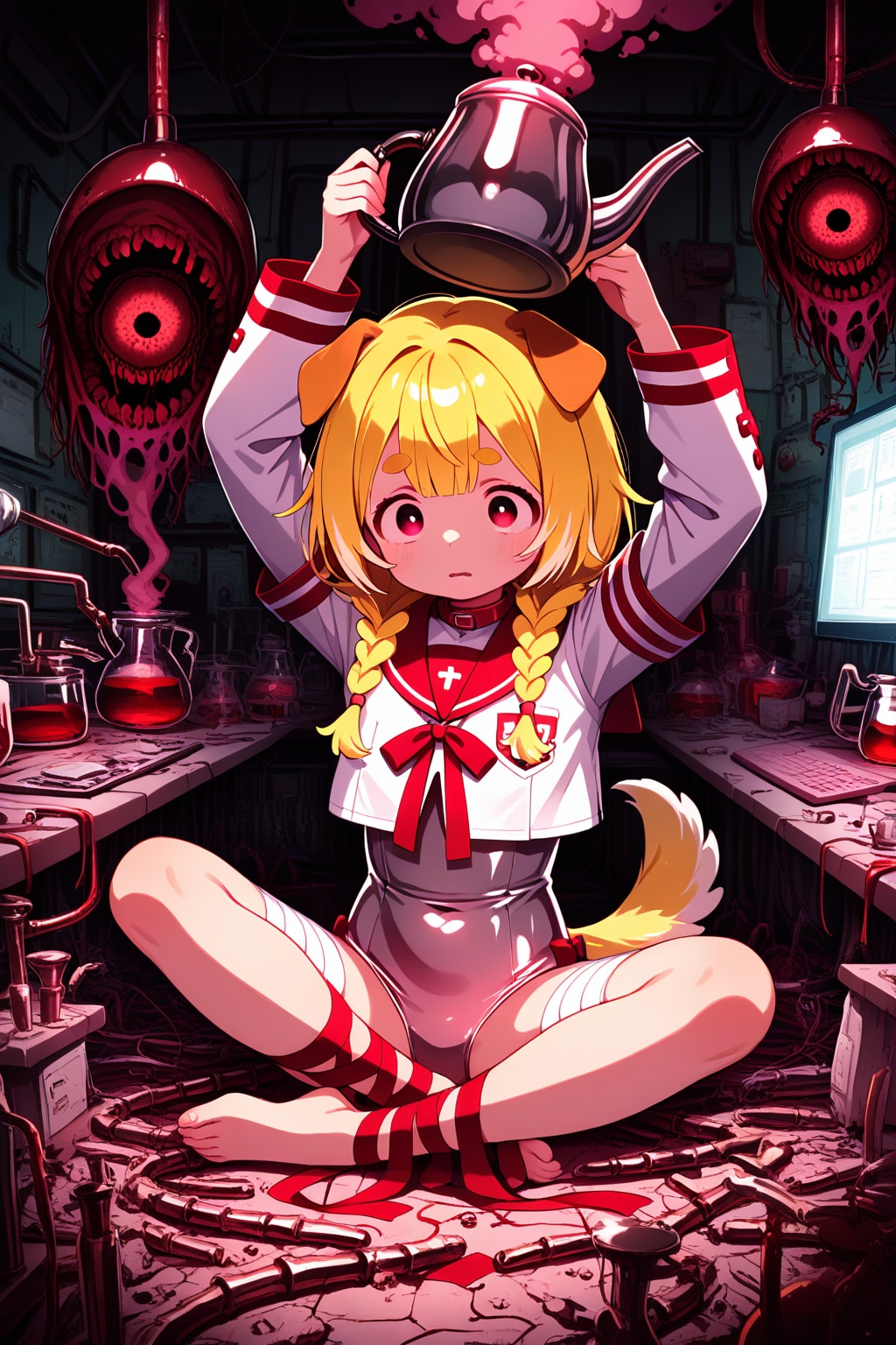 jacket partially removed, heart in eye, burnt clothes, holding fishing rod, kanji, doujin cover, pentagram, tape gag, adjusting headwear, red socks, friends, cloud print, coke-bottle glasses, oral invitation, competition school swimsuit, barbell piercing, gradient legwear, prisoner, blood on breasts, wind chime, carrying over shoulder, tape measure, flaming weapon