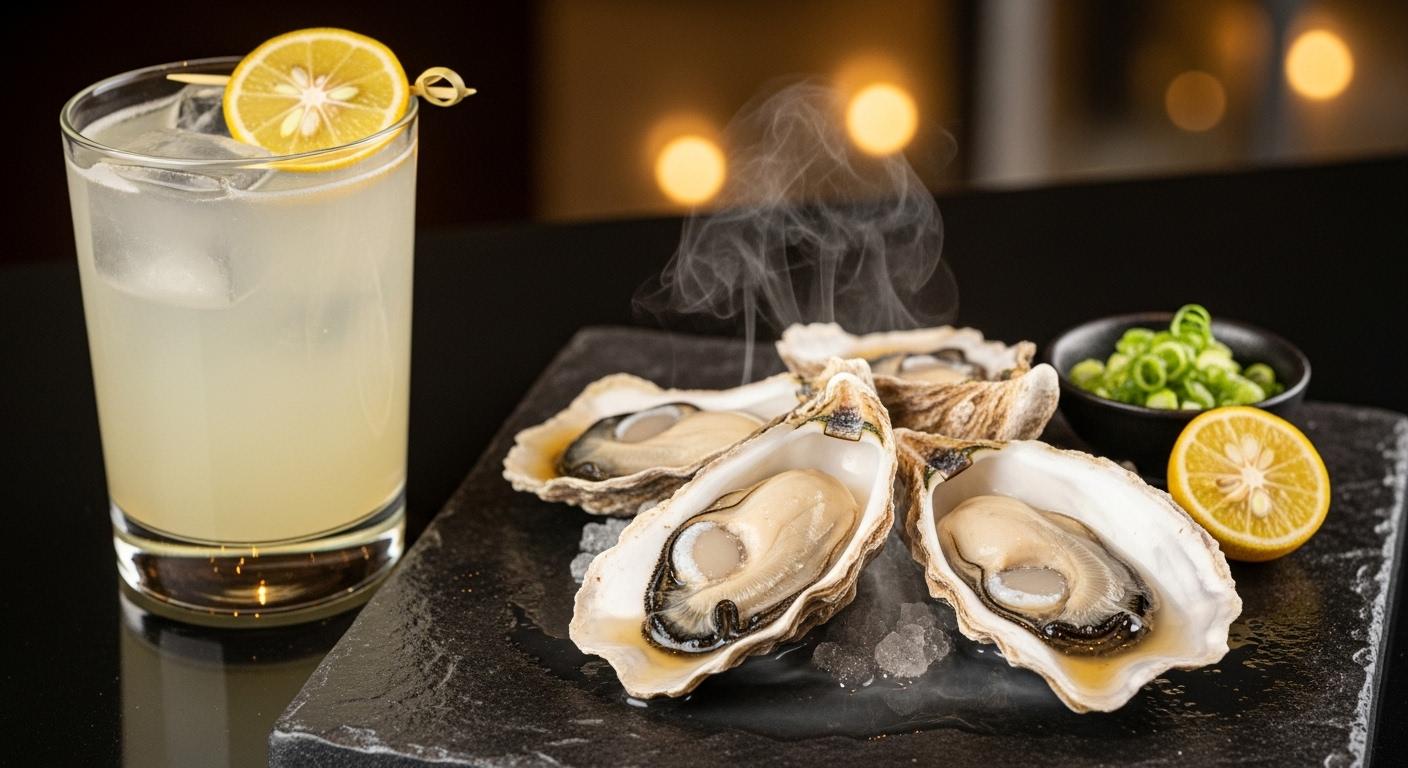 牡蠣の酒蒸しとゆずサワーを頂きましょう