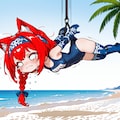 jacket partially removed, heart in eye, burnt clothes, holding fishing rod, kanji, doujin cover, pentagram, tape gag, adjusting headwear, red socks, friends, cloud print, coke-bottle glasses, oral invitation, competition school swimsuit, barbell piercing, gradient legwear, prisoner, blood on breasts, wind chime, carrying over shoulder, tape measure, flaming weapon