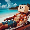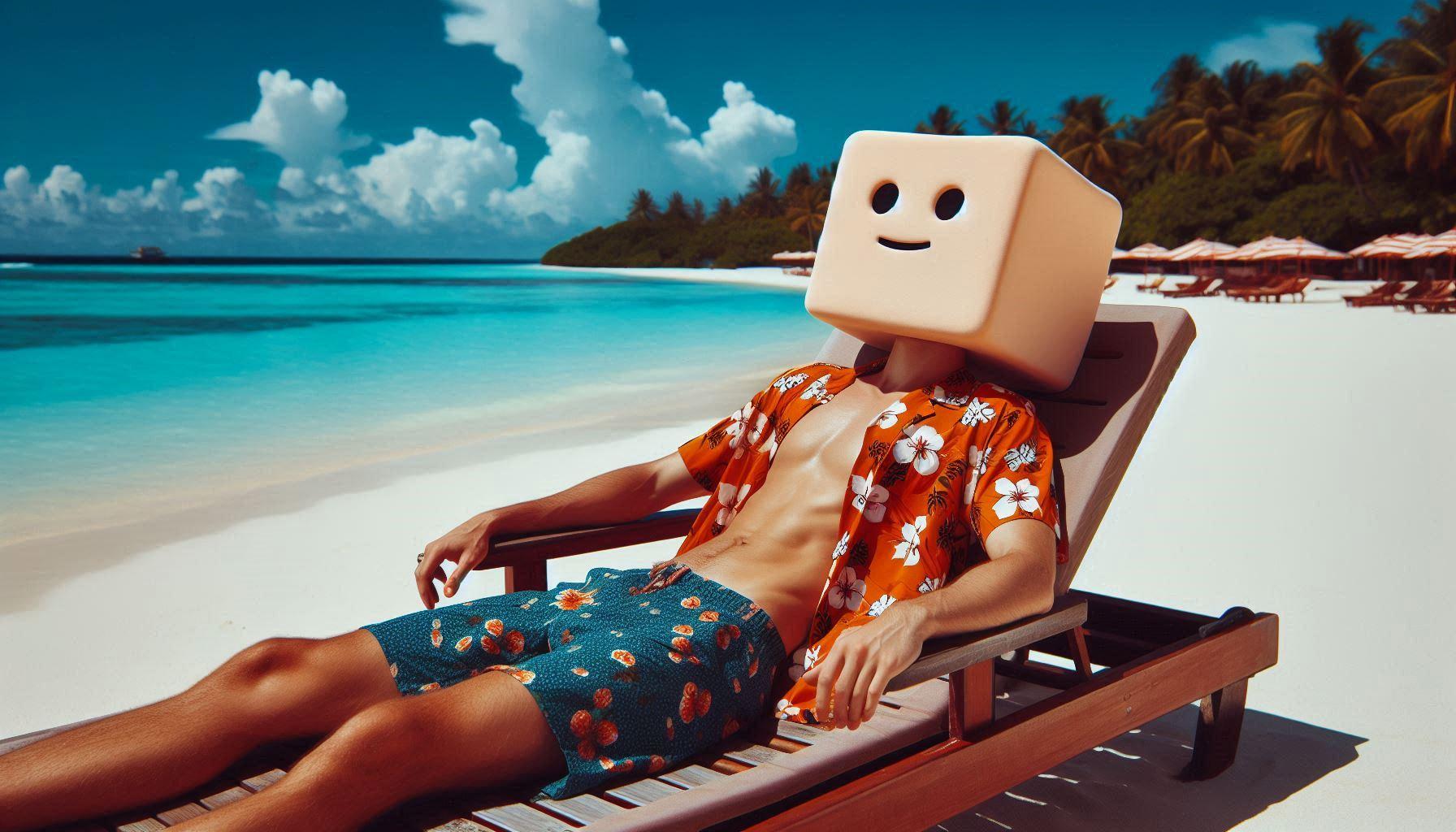 豆腐太郎は水分を抜くために南国のビーチで肌を焼きました