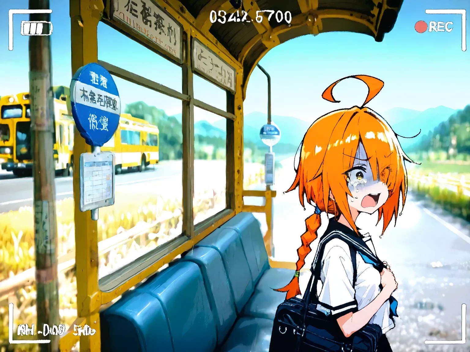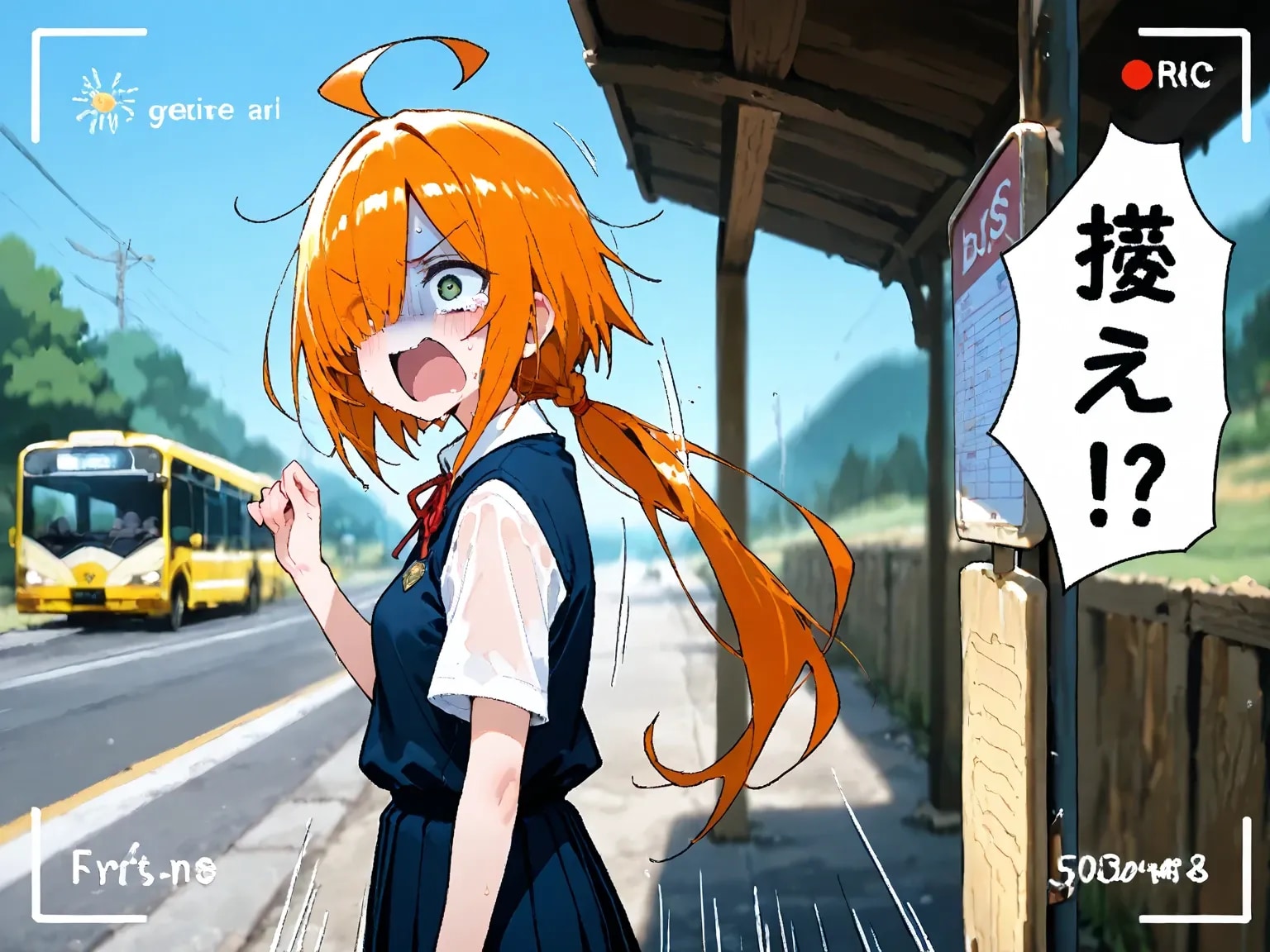 既の所でバスに乗り遅れた目隠れちゃん。