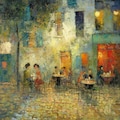 絵画は描けない自分が、「夜のカフェテラス」のイメージを自分の頭で言語化し(英訳はGoogle翻訳)AIに作成してもらいました。Midjourneyはゴッホの絵を認識しているらしく、1枚模倣作が出来ました(4枚目)。