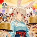 カエデ🦊「配達が終わって食材を補充したから、“やっチャイナParty”を覗いていくよ...おっ、エリちゃんが食べ物を運ぼうとしてる😋激レアバージョンの服だね。心のカメラで激写だっ☆(・ω<)」