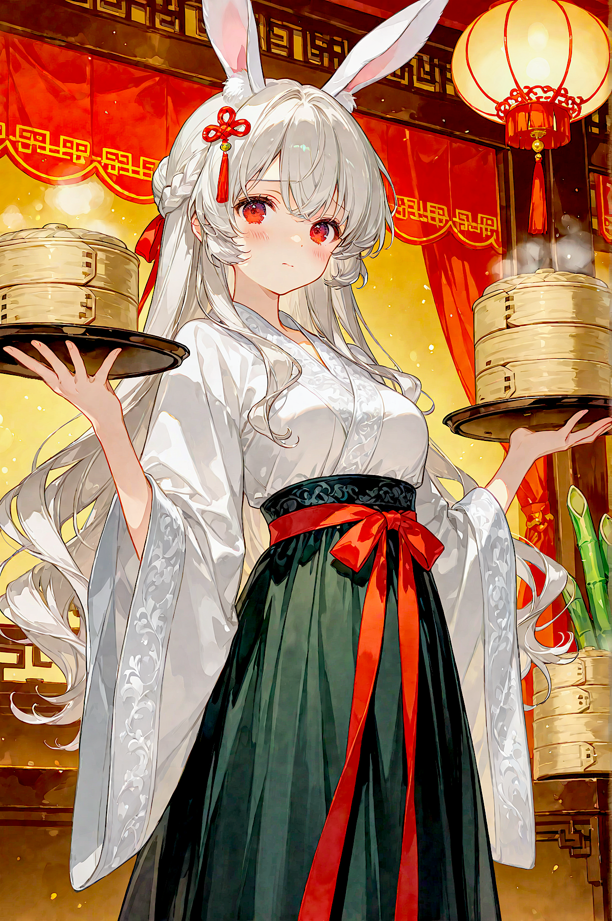●#3~4枚目:SDXLでこちらは白い漢服と赤の漢服のおまけです。
