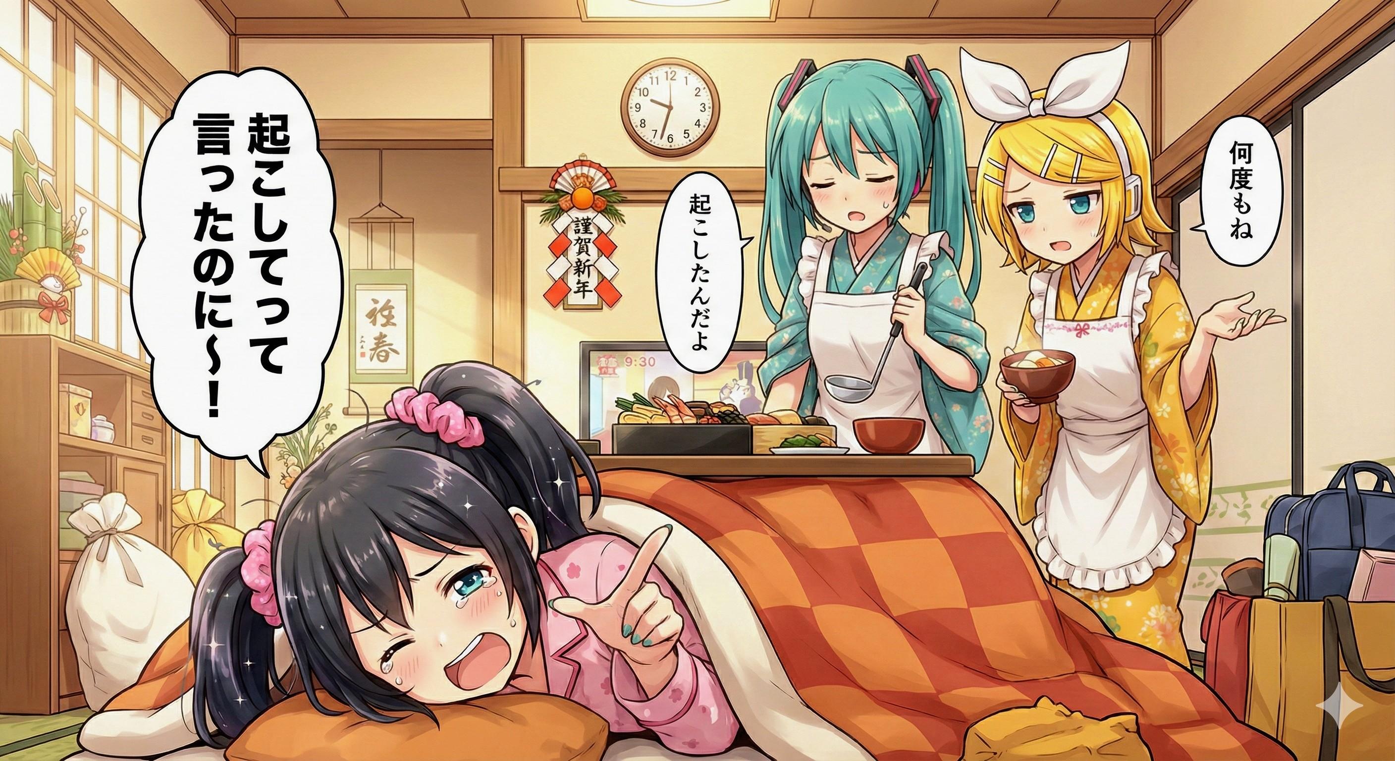 年越し参り こたつに負けたアケちゃん😁 2025/12/31 使用したAI Gemini #初音ミク #鏡音リン #こたつ #睡魔 #Gemini #ちちぷい年末年始 #アケちゃん #年越し参り 呪文 入力なし じゃんけん ぽい 1,078 投稿 フォロー 111 フォロワー 111 Gemini生成ミクさんを主に投稿してみようかなと( ̄∇ ̄)R15とかR18の判断が悩ましいぃあまり返信はしませんが、コメント有り難く思います。 じゃんけん ぽいさんの他の作品 じゃんけん ぽいさんの他の作品 恵方巻き皆で作って皆で食べよ~!🎶 じゃんけん ぽい ウサギが一番悪だった2 じゃんけん ぽい ミクさん ライブ じゃんけん ぽい ゴシック ちびセイバー じゃんけん ぽい ミクさん達の銀河鉄道の旅 じゃんけん ぽい 恵方巻き皆で作って皆で食べよ~!🎶 じゃんけん ぽい ウサギが一番悪だった2 じゃんけん ぽい ミクさん ライブ じゃんけん ぽい ゴシック ちびセイバー じゃんけん ぽい ミクさん達の銀河鉄道の旅 じゃんけん ぽい キャンプファイヤー🔥 じゃんけん ぽい