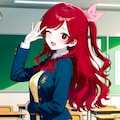 シバクラカズハさんとこの赤河ミオちゃんです!年も髪型もうちの子のナミちゃんと似ているのでナミちゃんの制服を着てもらいましたw