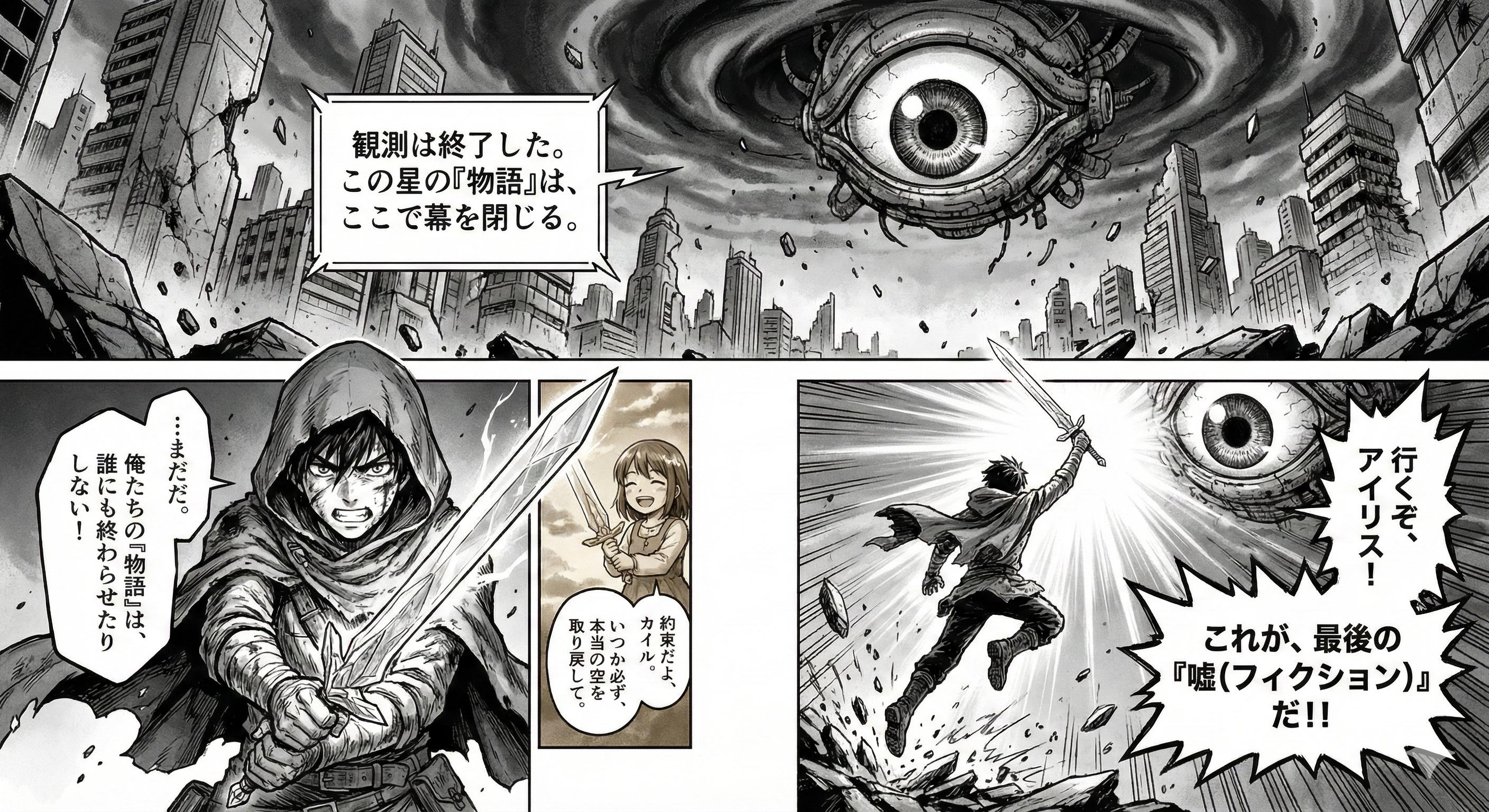 9枚目『偽空(ぎくう)のナラティブ』◀コマの順番がおかしい