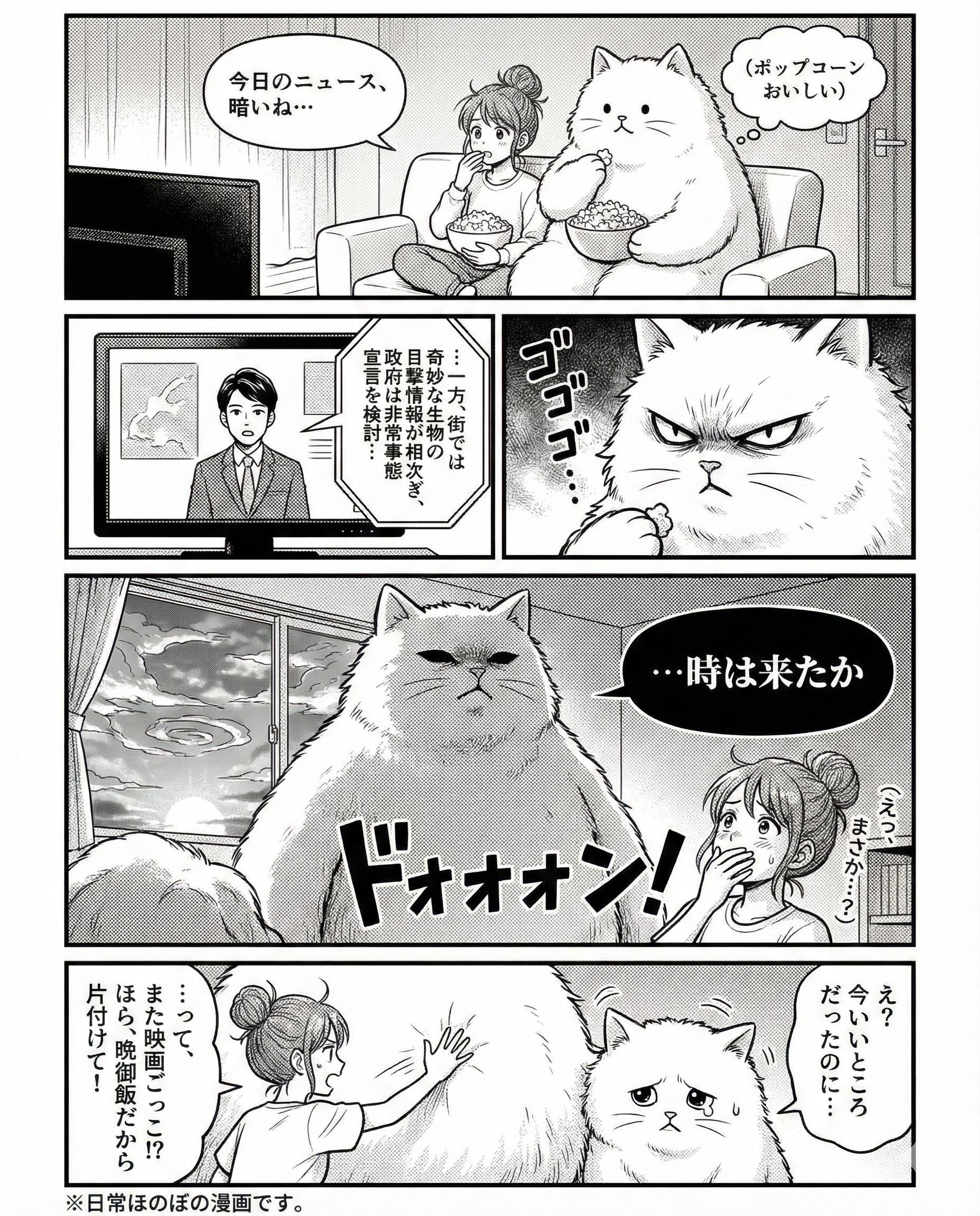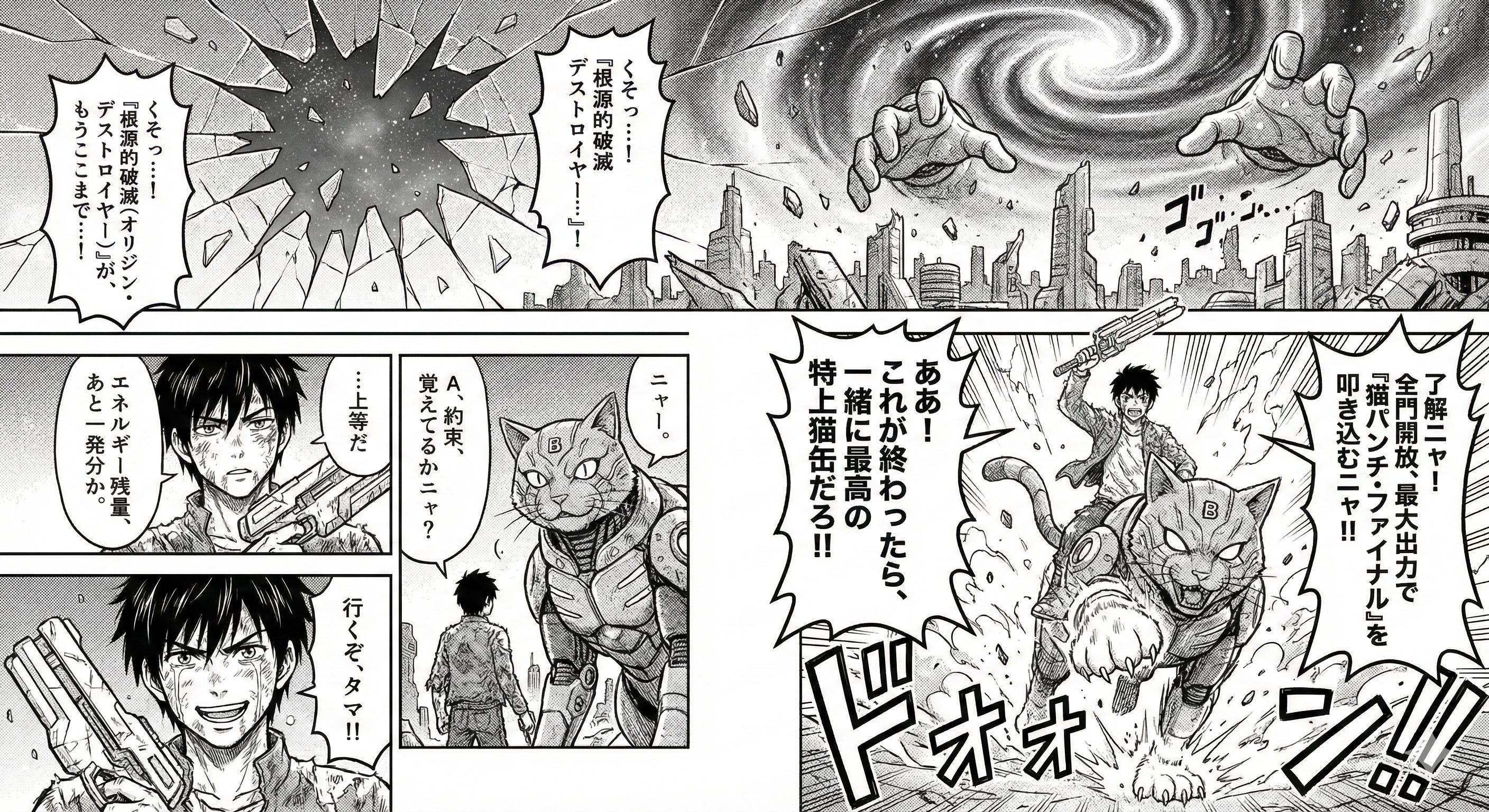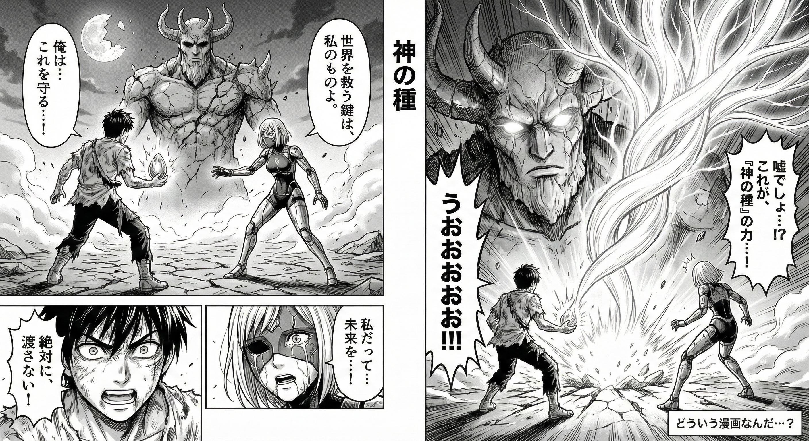 プロンプトの通り全てをAIにお任せして漫画を描いてもらいました。