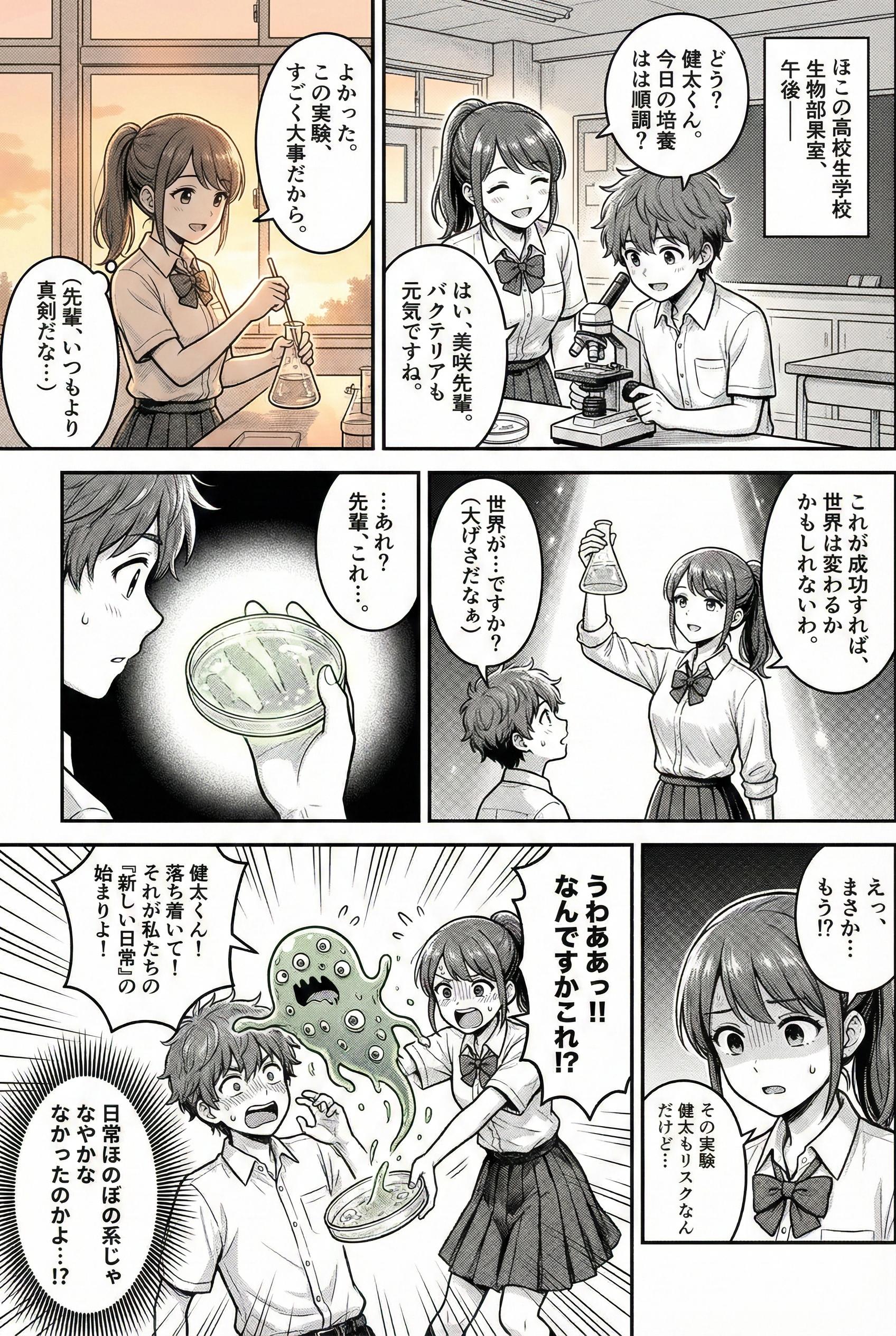 3枚目『放課後の生物室で、先輩が「世界を変える」と言って生み出したのがコレなんですが。』