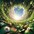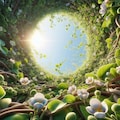 3 背景 鳥瞰図 つる植物のつるに小花 中央大きく空いている オリジナル
