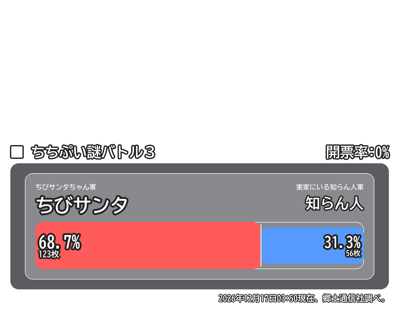 ※開票率0%で、予想値を放り込んでいます。ジタバタアザラシ軍はデフォルト画面では抜いています。