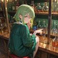 「いらっしゃい、今日はなに飲むの?」と同じプロンプトで生成された画像です、桃色の髪を指定したのに何故か緑髪になってしまったり、笑顔が足りなかったのでボツになりましたが、画像としては綺麗ではあります。