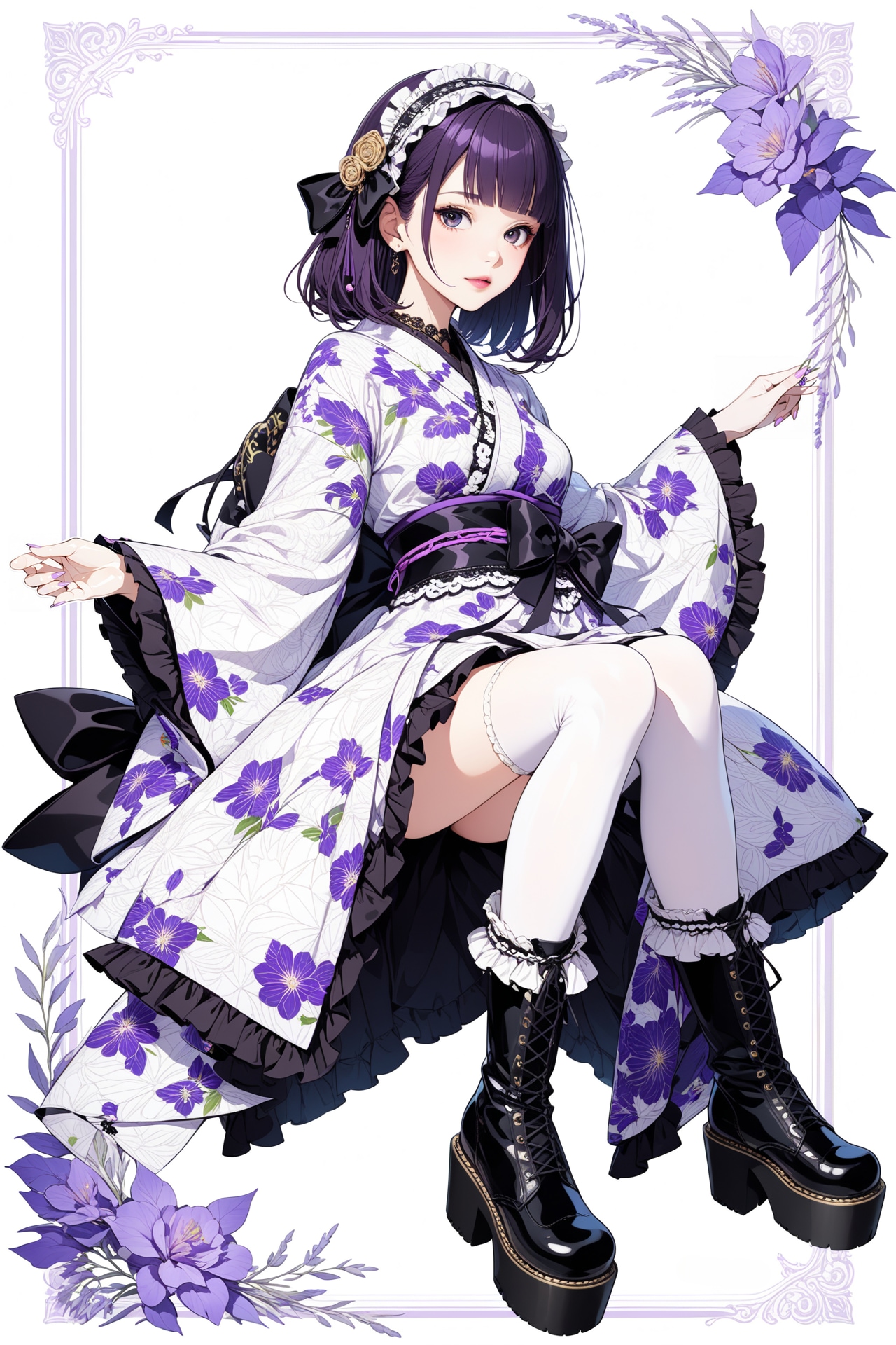 着物×ゴシックロリータ風ファッションです。