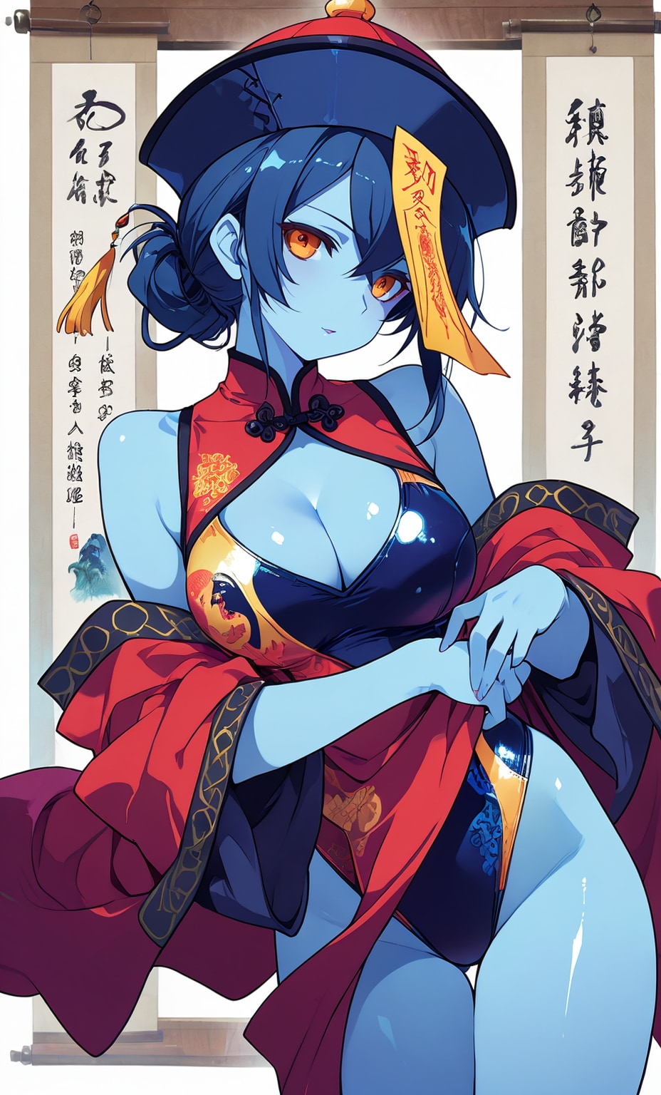 私って中々かわいい美少女キョンシーが生成できなかったのですが?💦某所でかわいいキョンシーっ娘を生成できるLoRAの組み合わせを公開してくださっているご紳士がいて、それを参考にして生成した競泳チャイナ服なキョンシーちゃん達です😊♪。