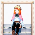 jacket partially removed, heart in eye, burnt clothes, holding fishing rod, kanji, doujin cover, pentagram, tape gag, adjusting headwear, red socks, friends, cloud print, coke-bottle glasses, oral invitation, competition school swimsuit, barbell piercing, gradient legwear, prisoner, blood on breasts, wind chime, carrying over shoulder, tape measure, flaming weapon