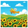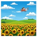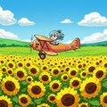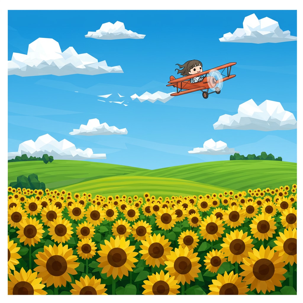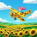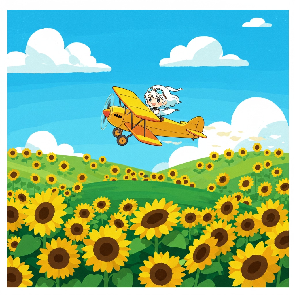 ヒマワリのある風景51・複葉機とチビちゃん