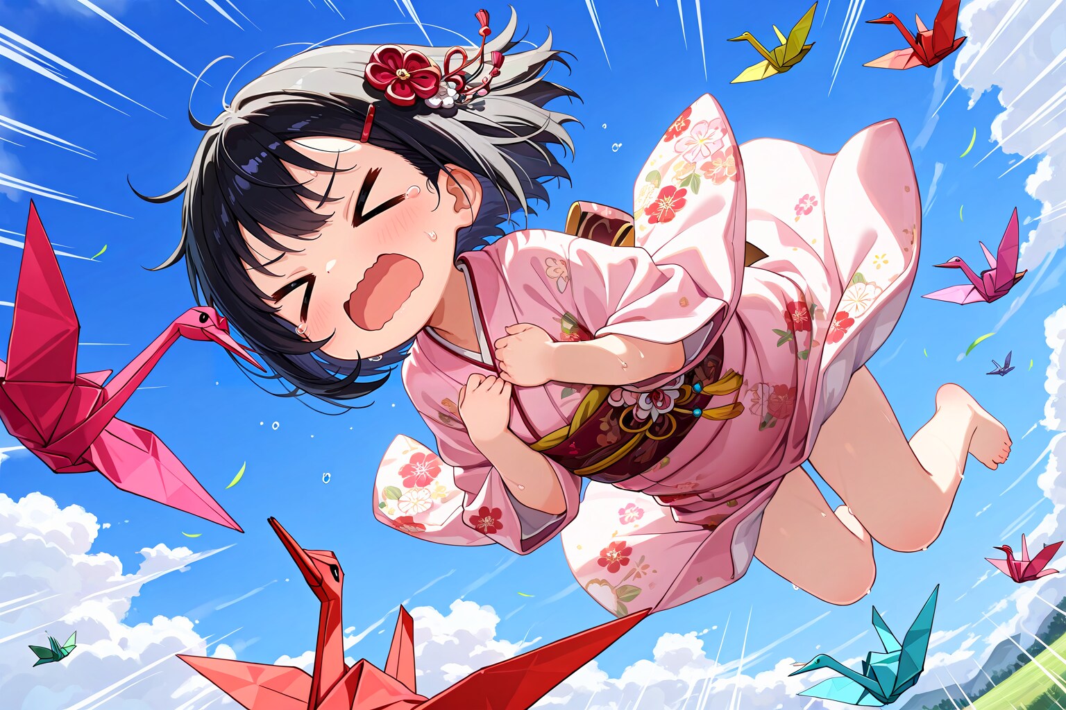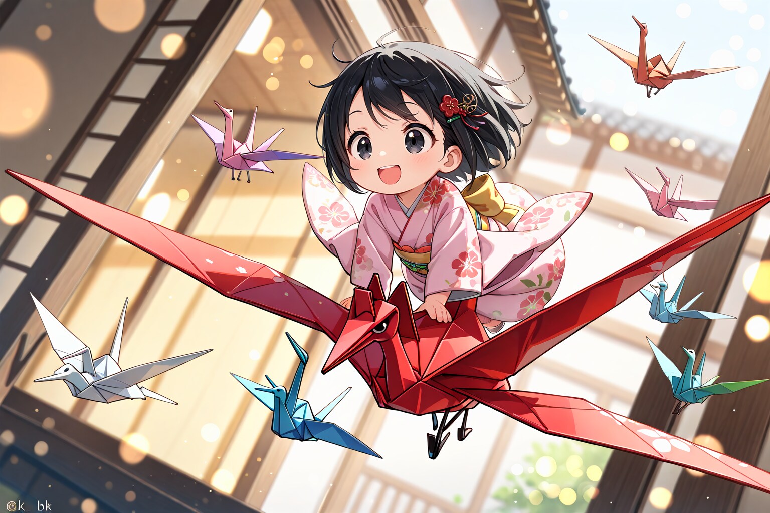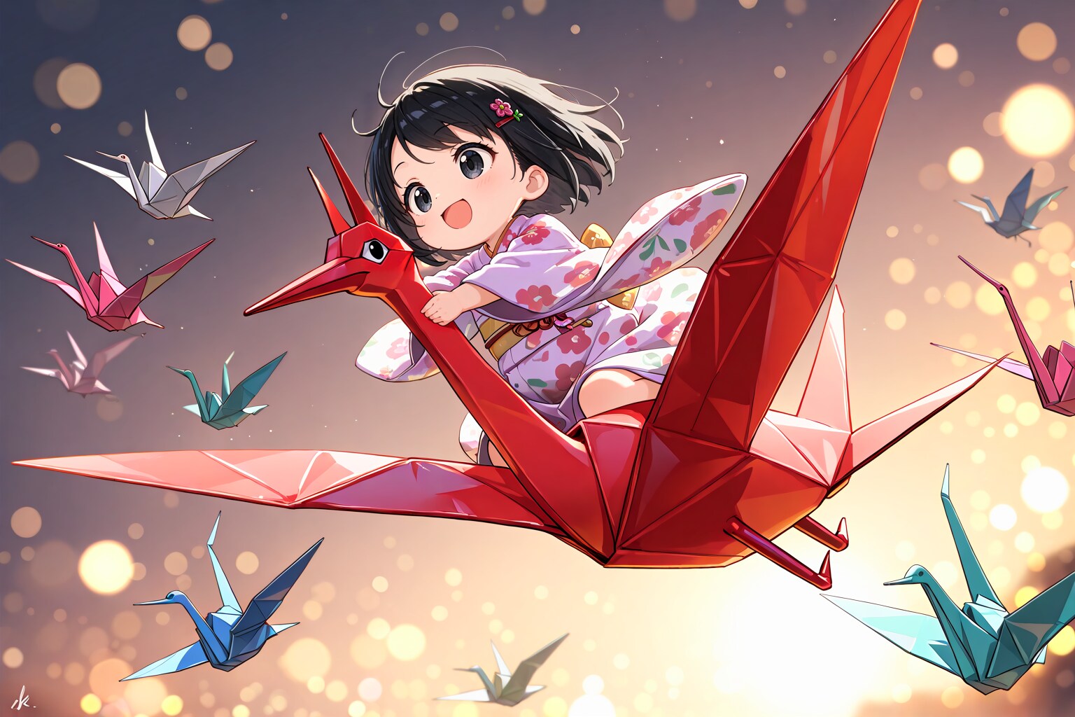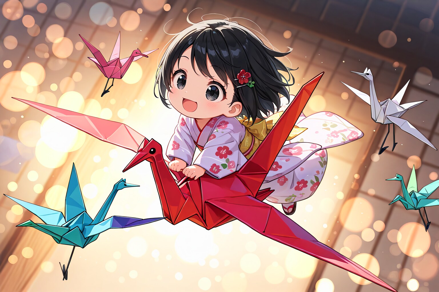 AIさんの描く折り鶴には目と足があります。