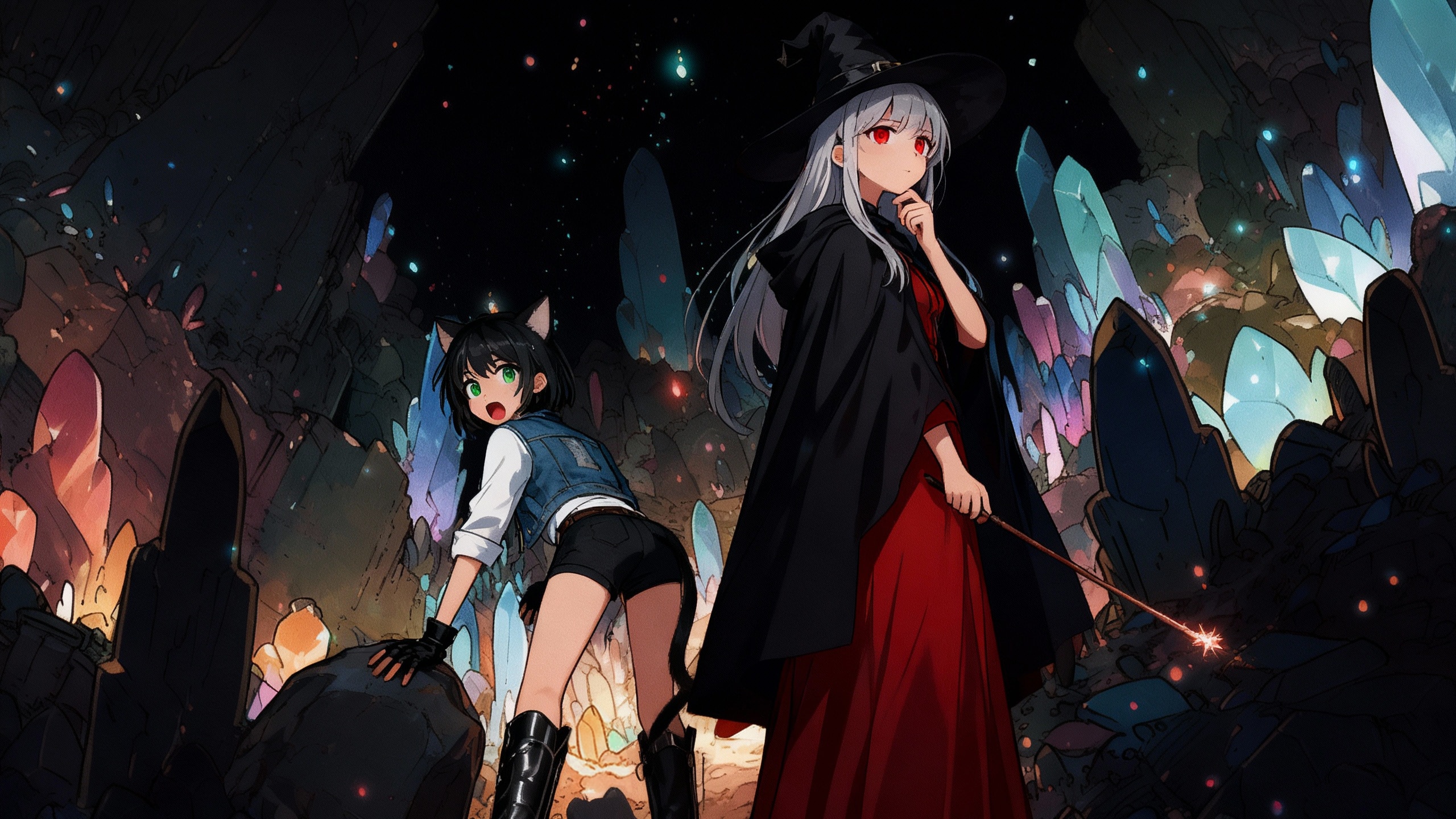 銀髪魔女と猫耳少女の洞窟探検