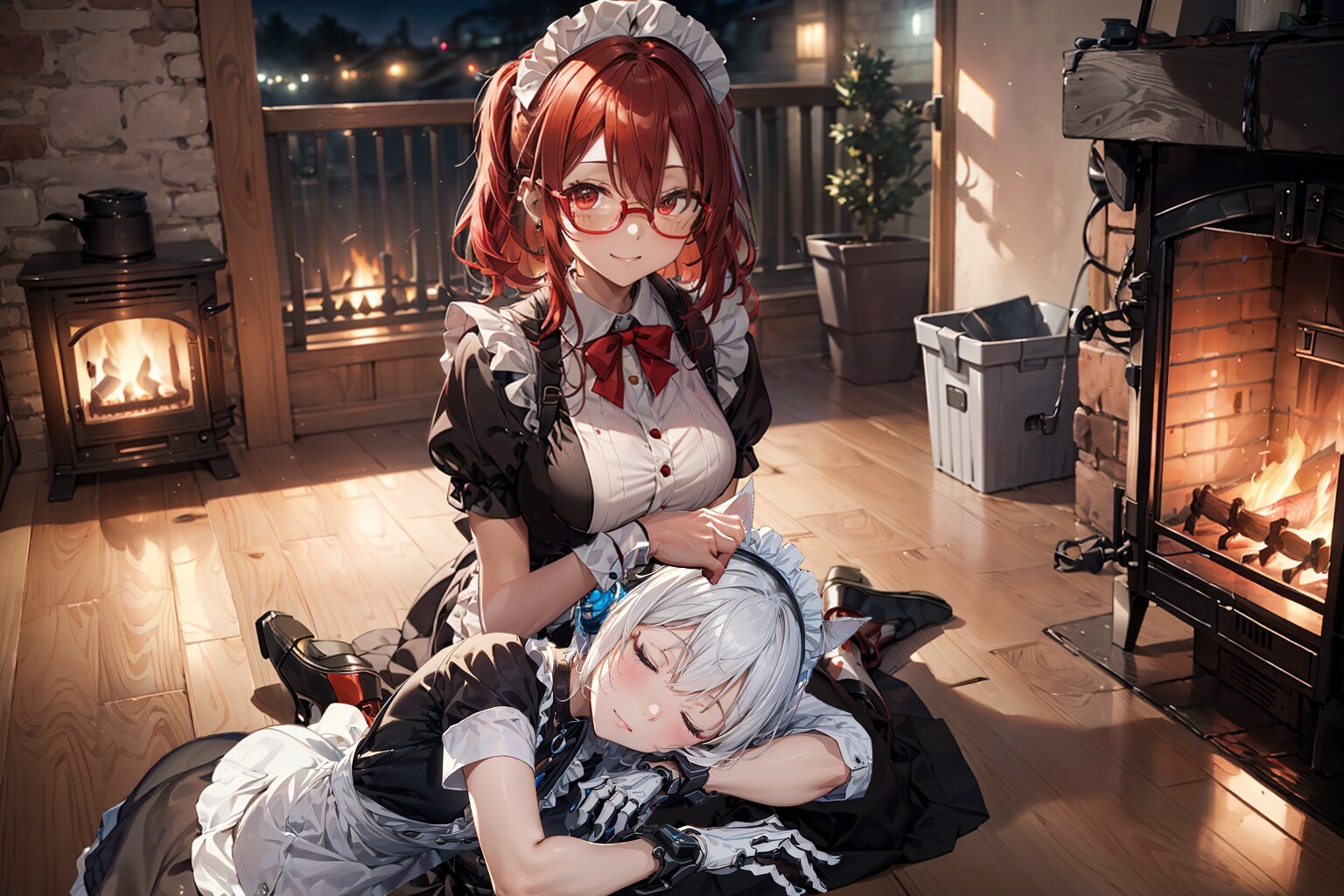 その夜、俺がメイドたちの休憩室に入ると、シロは、ラポームに膝枕をされながら寝ていた。慣れない仕事で疲れたのだろう。