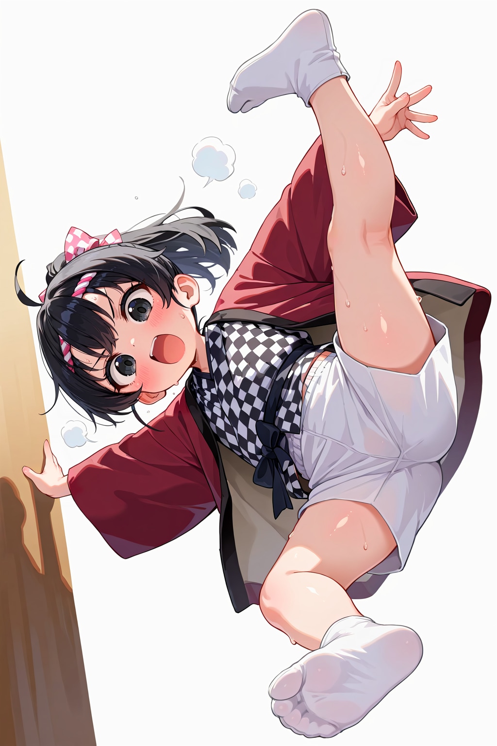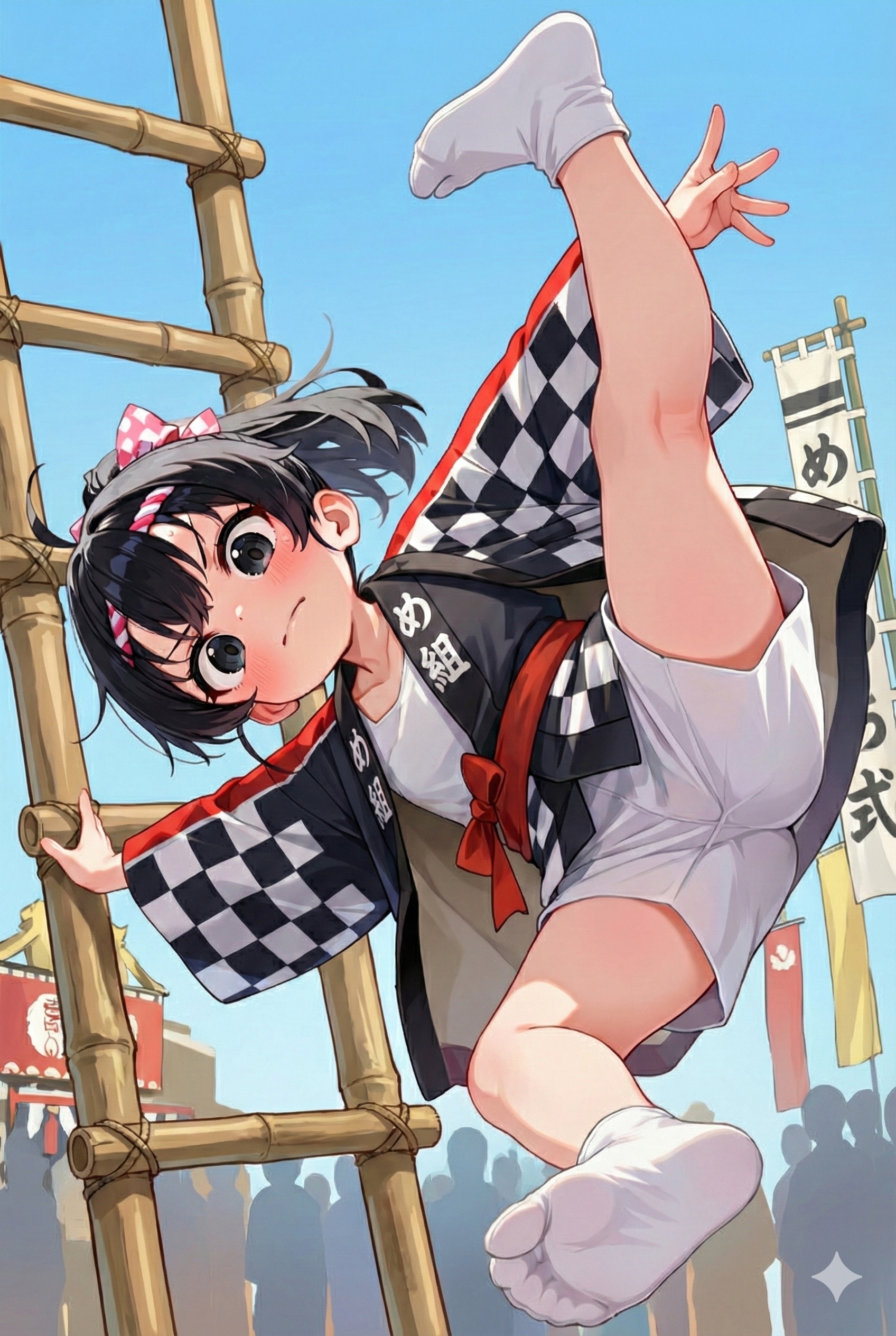 jacket partially removed, heart in eye, burnt clothes, holding fishing rod, kanji, doujin cover, pentagram, tape gag, adjusting headwear, red socks, friends, cloud print, coke-bottle glasses, oral invitation, competition school swimsuit, barbell piercing, gradient legwear, prisoner, blood on breasts, wind chime, carrying over shoulder, tape measure, flaming weapon