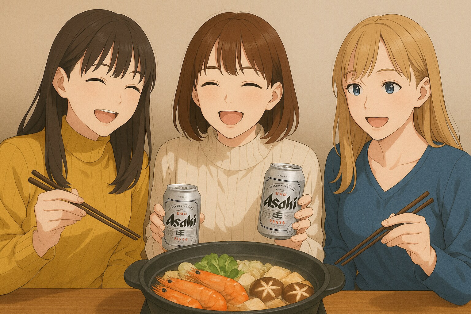 友人と楽しむ鍋はリアル作者としてももちろん経験がありますが、それは楽しく美味しいものです。(^^)