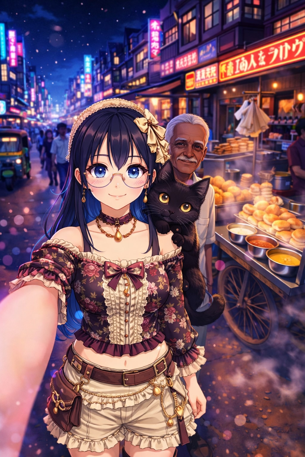 ネオン街で出会った小さな相棒と、夜の屋台スナップ