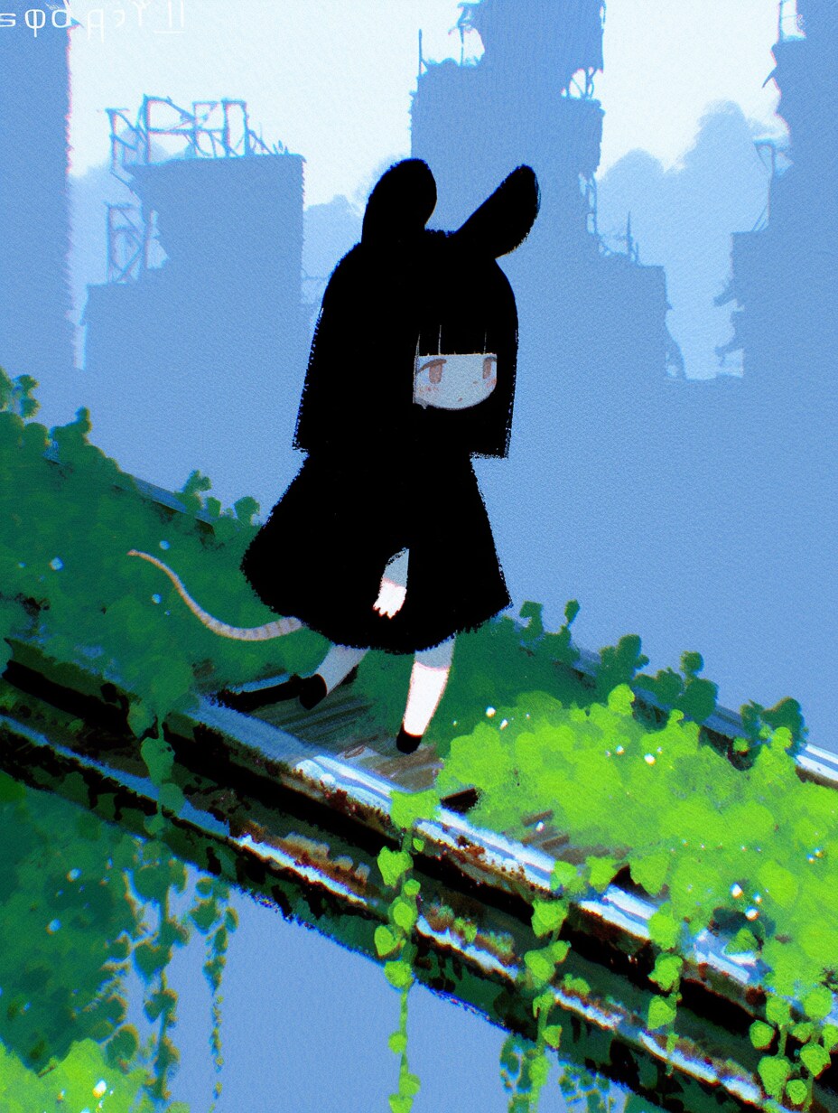 終末世界とのことなので、廃墟を探索するような感じのねず耳ちゃんを🐀