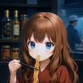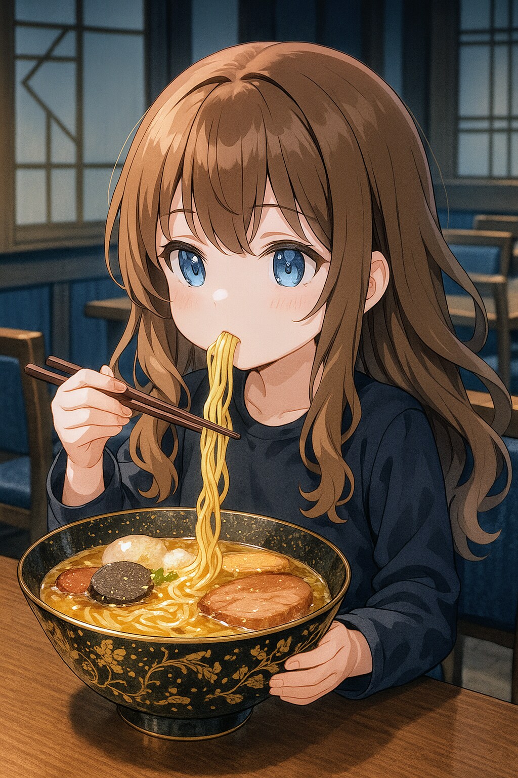 高級ラーメンを食べる小さな女の子