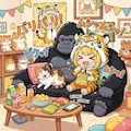 ゴリラソファーに座る虎娘ちゃん