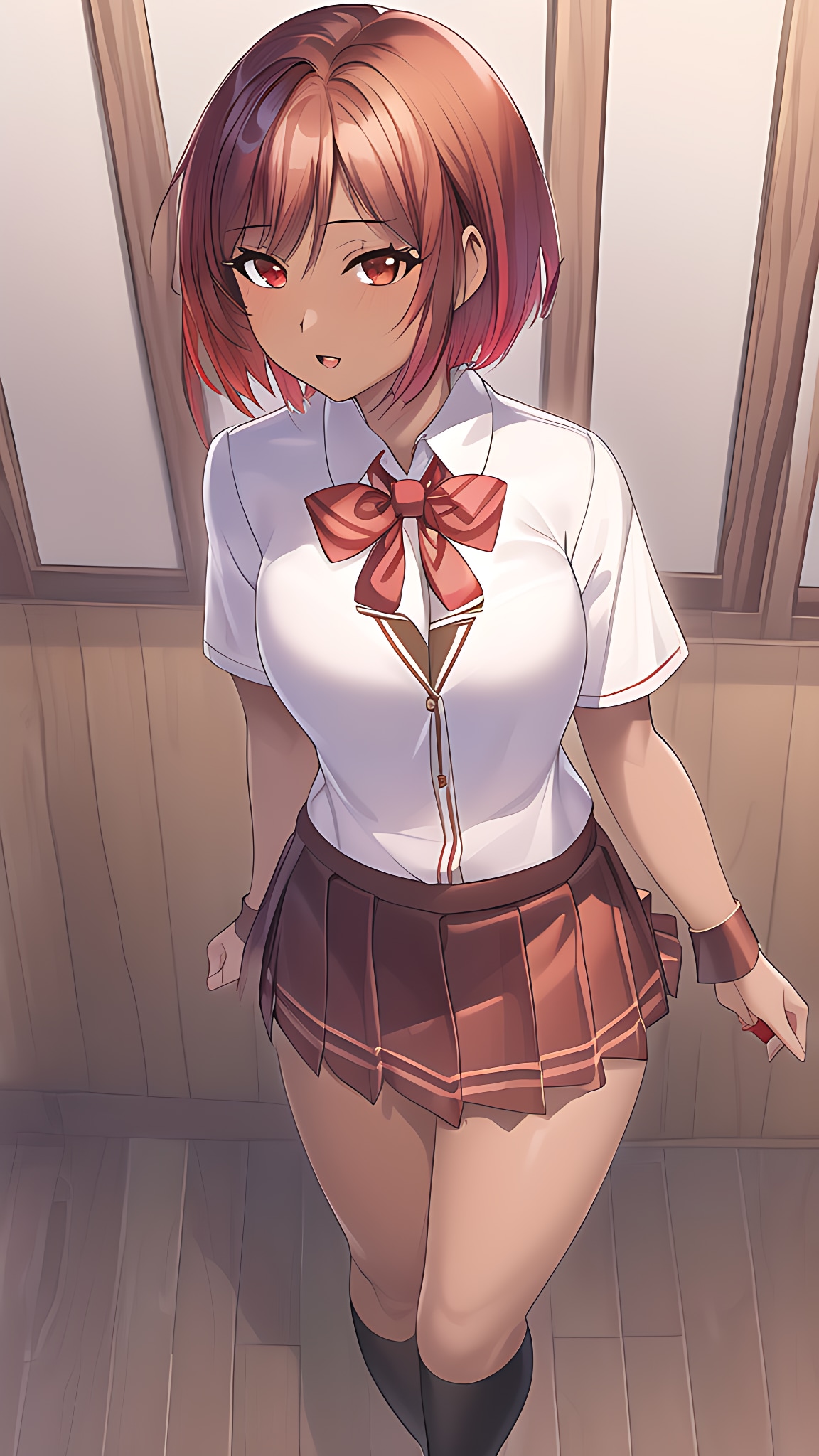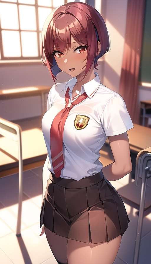 今回は赤髪ショートヘアJKです。何となく赤髪はショートヘアが似合う感じがします。