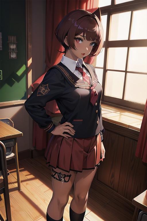 赤髪ショートヘアのJKです。以前青髪ショートボブJKを出しましたが