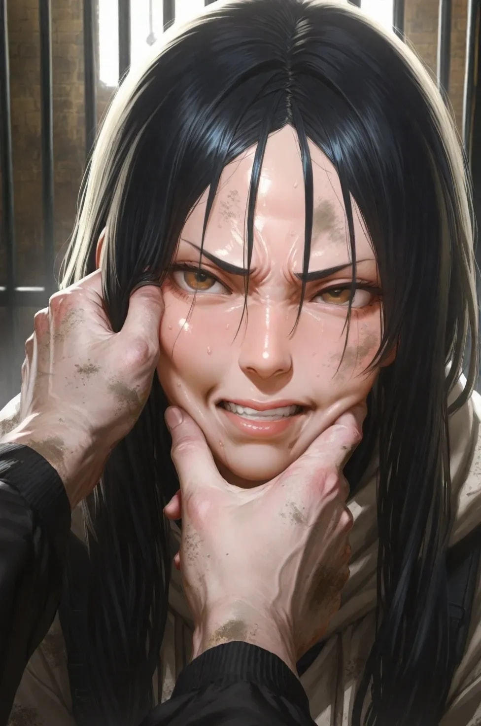 新人の顔に教官(鬼)の暖かい手が