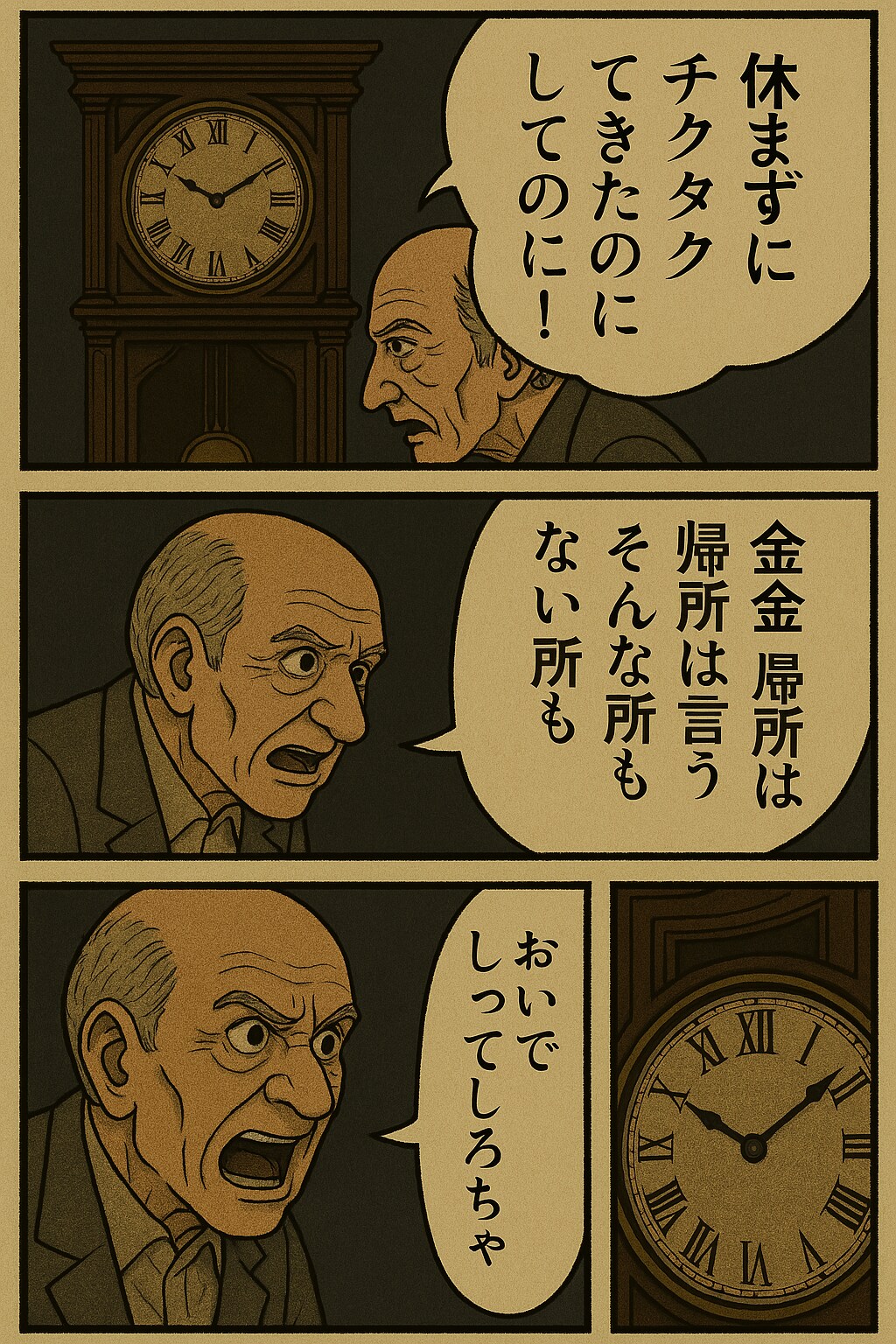 大きな古時計でくにへかえる 2025/06/06 使用したAI ChatGPT #おじいさん #くにへかえる漫画 #柱時計 #大きな古時計 ちょいちょい歌詞をプロンプトに突っ込んでます最後はおじいさんが天国ではなく地底に引きずり込まれた 呪文 入力なし モロヘイヤマン 2,335 投稿 フォロー 514 フォロワー 770 たまに狂気を生み出す者ですテーマは気分次第、えっちなイラストからネタ投稿までやります誰かの性癖に刺さる、またはクスっとくるような投稿ができればいいと思います 12/14〜 『ちっぱい&マン毛』(R18)開催12/20〜 『見返り美人』開催12/26〜 『表情は想像で』(R18)開催1/2〜 『新春大開脚』(R15〜)開催1/6〜 『最強の双子』開催 モロヘイヤマンさんの他の作品 モロヘイヤマンさんの他の作品 寒いのはダメ! モロヘイヤマン 油淋鶏 モロヘイヤマン ニワトリの対処法 モロヘイヤマン 倍額の刺身 モロヘイヤマン デュエルスタンバイ! モロヘイヤマン 寒いのはダメ! モロヘイヤマン 油淋鶏 モロヘイヤマン ニワトリの対処法 モロヘイヤマン 倍額の刺身 モロヘイヤマン デュエルスタンバイ! モロヘイヤマン トングカチカチ闘争 モロヘイヤマン