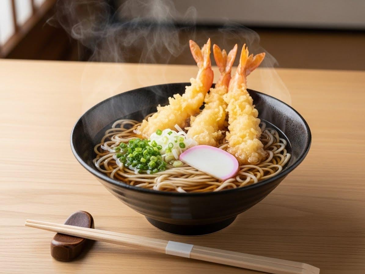 本日のメニューは、年越しそばで御座います。