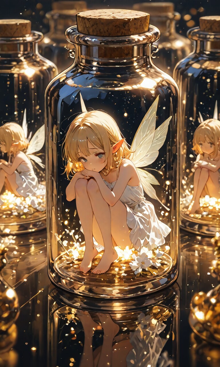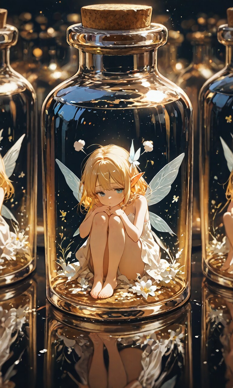 ちょっと人間の女の子を瓶に入れるのは気が引けたので、妖精さんに入ってもらいました。