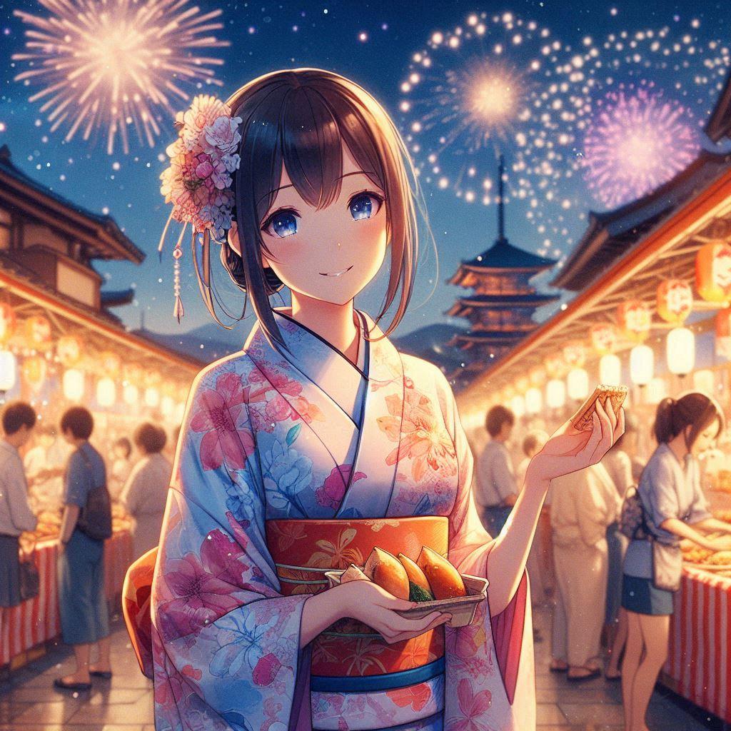 浴衣と女性、という組み合わせは固定して、花火有無だったり、お酒や食べ物だと持ってるものを変えたり・・・と、色んな理想のシチュエーションを作ってみました。