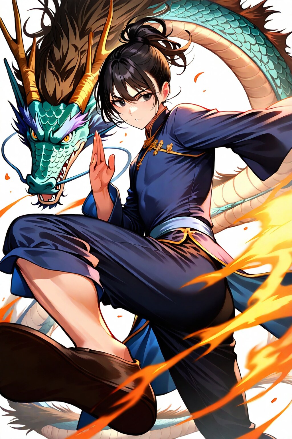 上半身裸体にしたらブルースリーやフェイロンみたいな拳法家も生成できそうですが、R18指定になる可能性大なのでやめておきます。