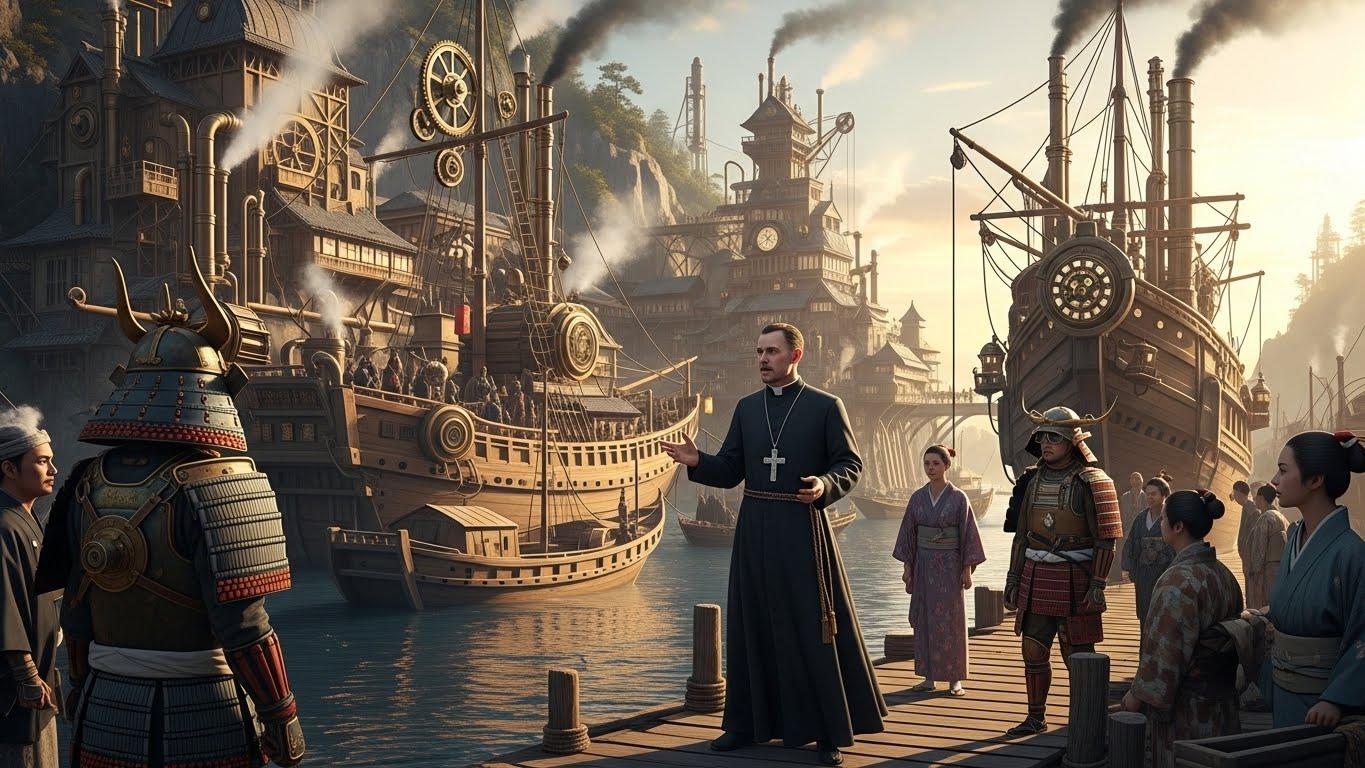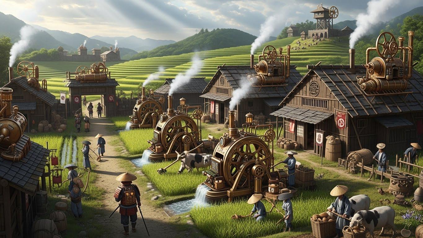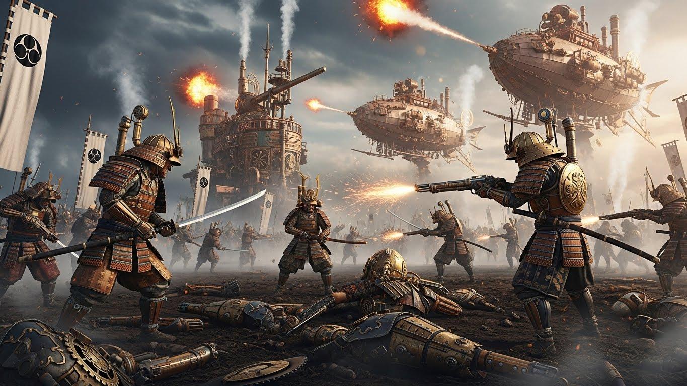 西暦1550年頃、天才発明家・南蛮渡来の技術者たちによって蒸気機関が日本に持ち込まれ、瞬く間に実用化された。火薬と蒸気技術が融合し、戦国の世は従来の刀と槍の戦いから、装甲兵器と機械化部隊が火花を散らす異形の戦場へと変貌する。