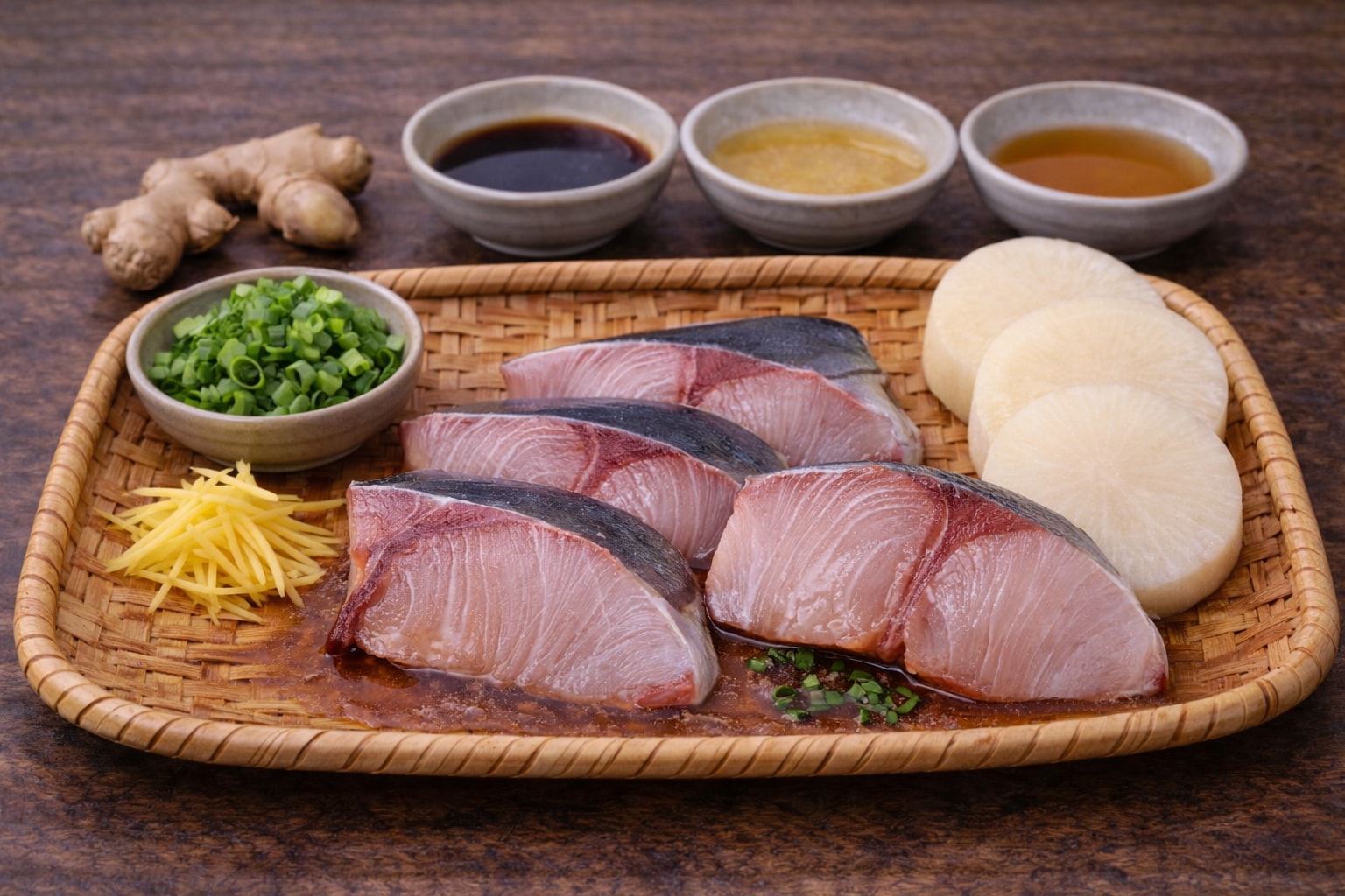 主役のぶりは、照りのある煮汁をまとって艶やか。箸を入れると身がほどけ、脂の甘みがふわりと広がります。そこへ生姜の輪郭がきゅっと効いて、後味は意外なほど軽い。“脂の旨さ”を“香りのキレ”で整える、このバランスがぶり大根の醍醐味ですね。